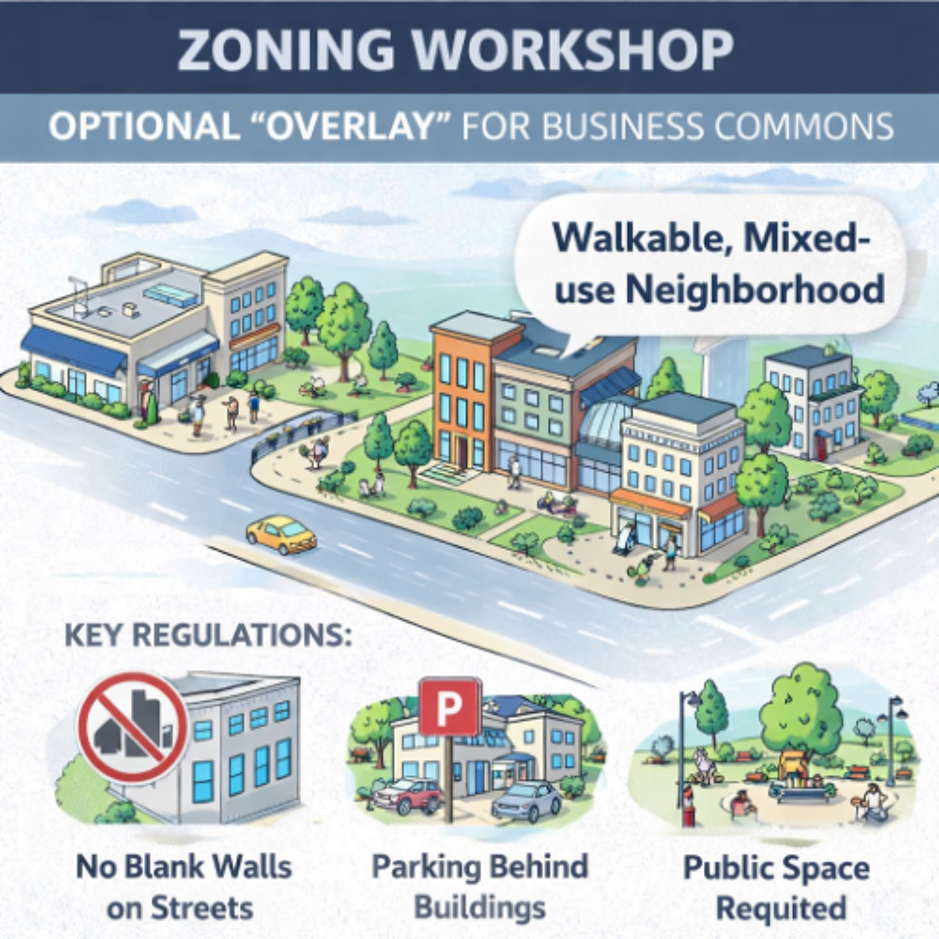 The primary goal of this new overlay district is to permit and encourage mixed-use development, including Town Center Apartments, within the existing Light Industrial and Office-Light Industrial zones to create a more walkable and vibrant community.