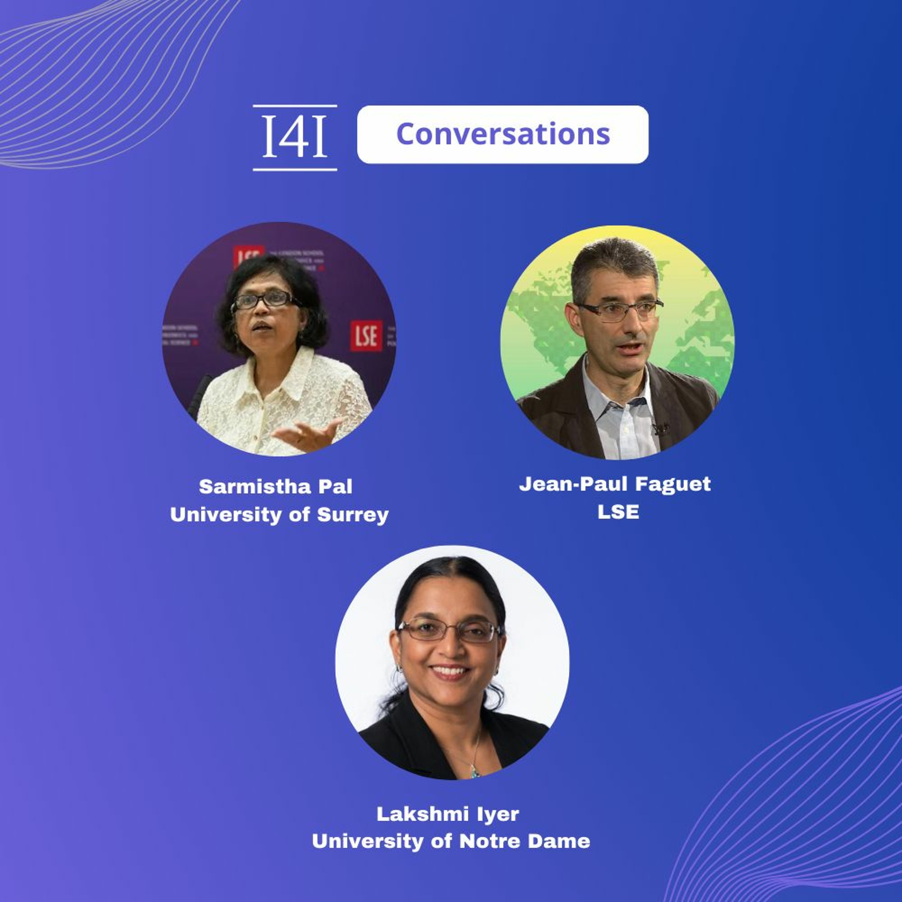 In a new I4I Conversation, Lakshmi Iyer (University of Notre Dame) joins Sarmistha Pal (University of Surrey) and Jean-Paul Faguet (London School of Economics), the editors of ‘Decentralised Governance: Crafting Effective Democracies Around the World’, to discuss the current global state of decentralisation. Over the conversation, they draw on theoretical and empirical insights from different chapters of the book, each featuring diverse countries – Pakistan, China, Indonesia, Kenya, India, Ghana, Bangladesh, and Colombia.