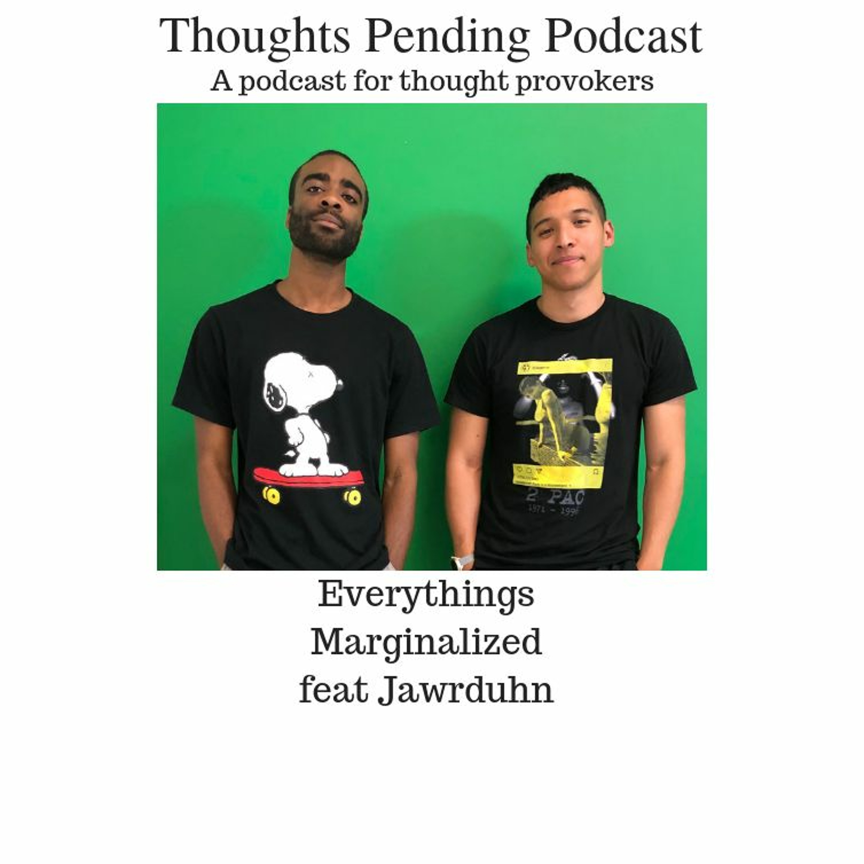 This week i'm joined by my long time friend Jawrduhn we give our take on "Diversity", identifying with the POC (person of color) term, Karma being a farce and a whole lot more. Be sure to 5 star rate, comment and subscribe and use #ThoughtsPending when sharing on social media.