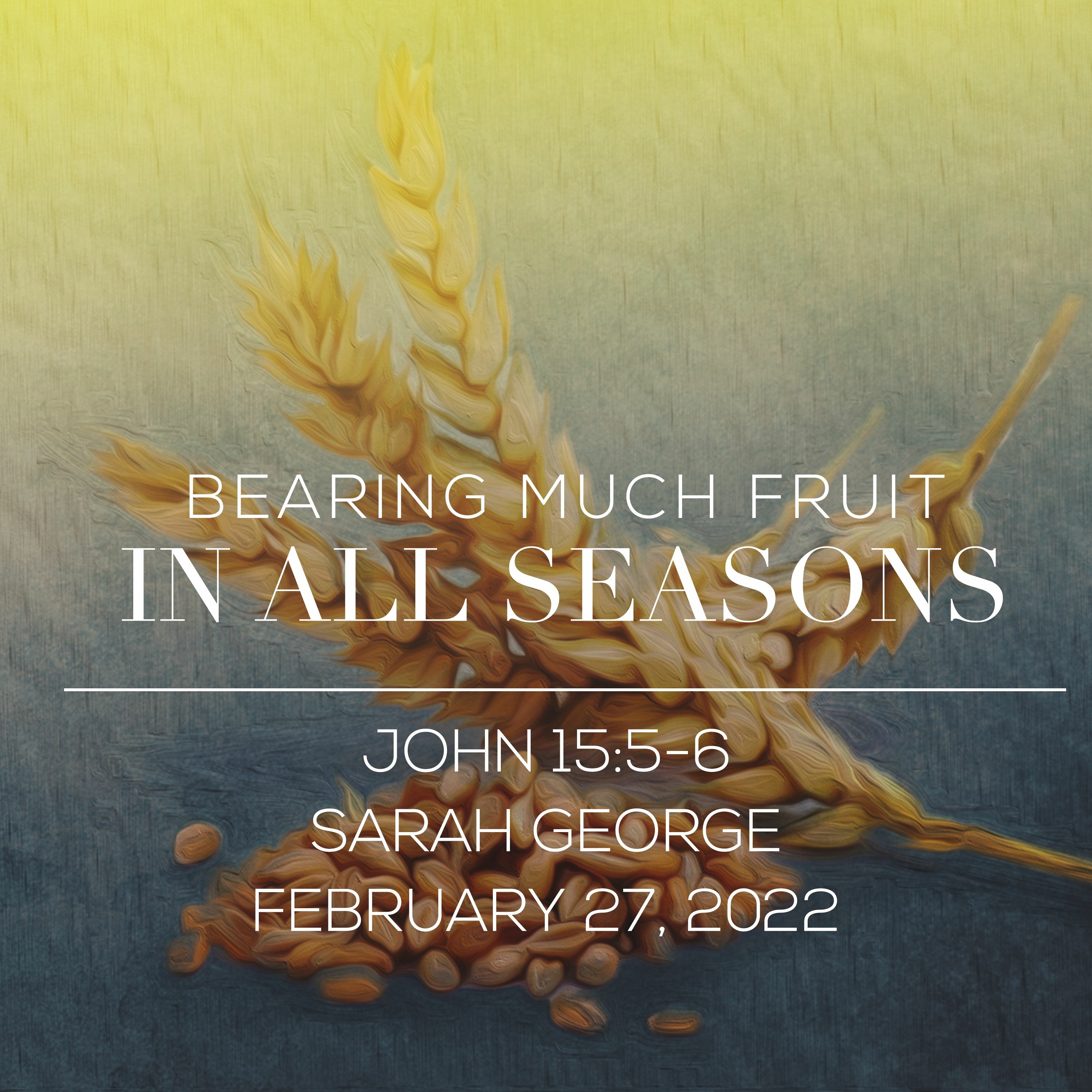 Sarah George speaks from John 15:5-6 titled Bearing Much Fruit in All Seasons
