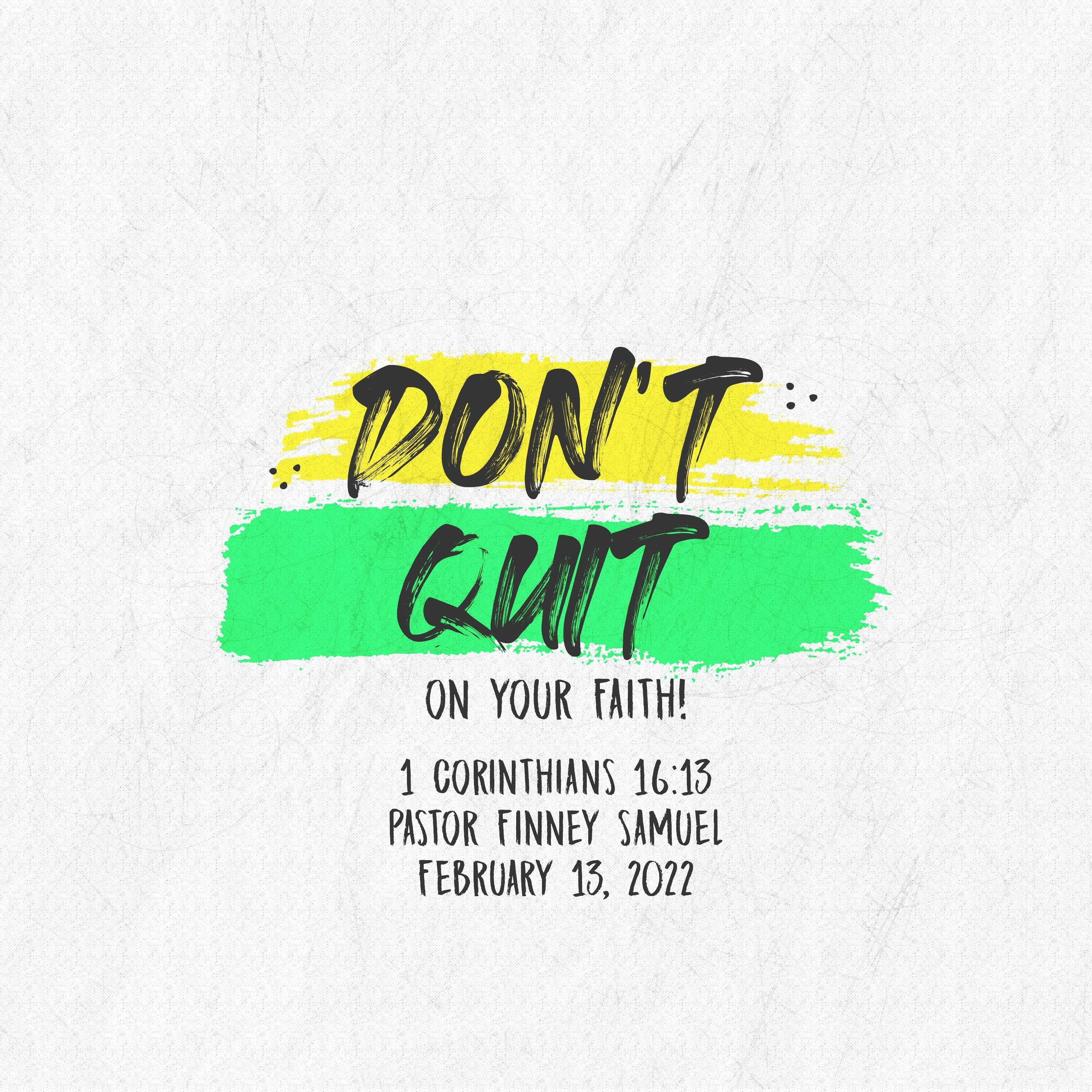 Pastor Finney Samuel speaks from 1 Corinthians 16:13 titled Don't Quit On Your Faith!