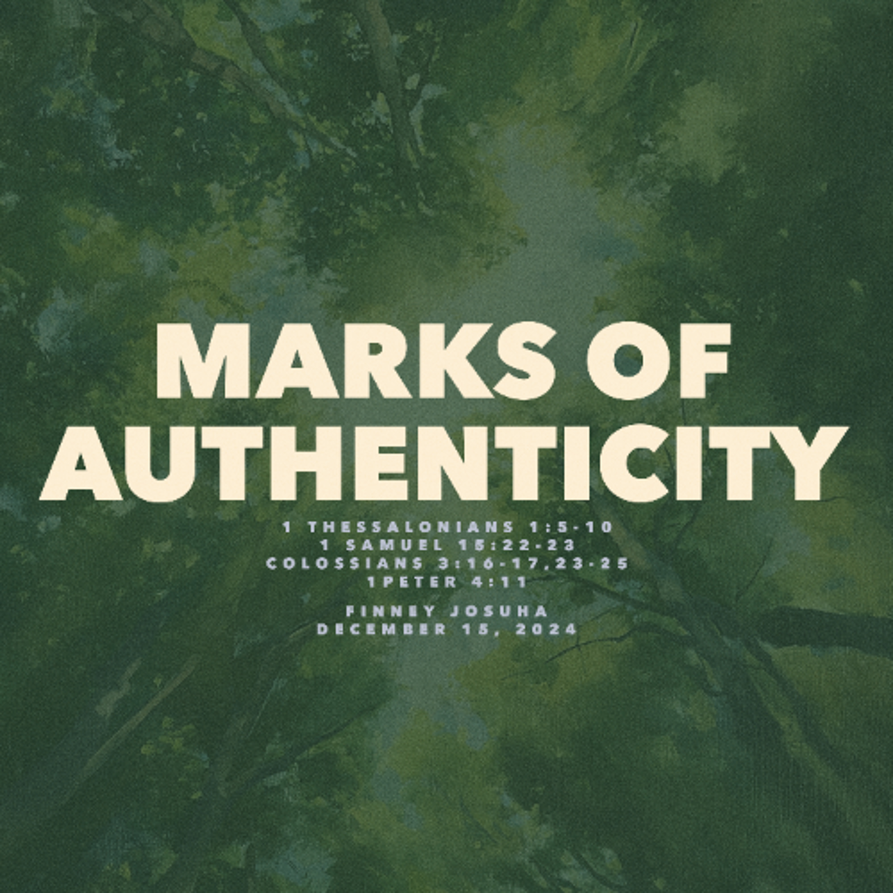Finney Joshua speaks from 1 Thessalonians 1:5-10, 1 Samuel 15:22-23, Colossians 3:16-7,23-25, 1 Peter 4:11 titled Marks of Authenticity