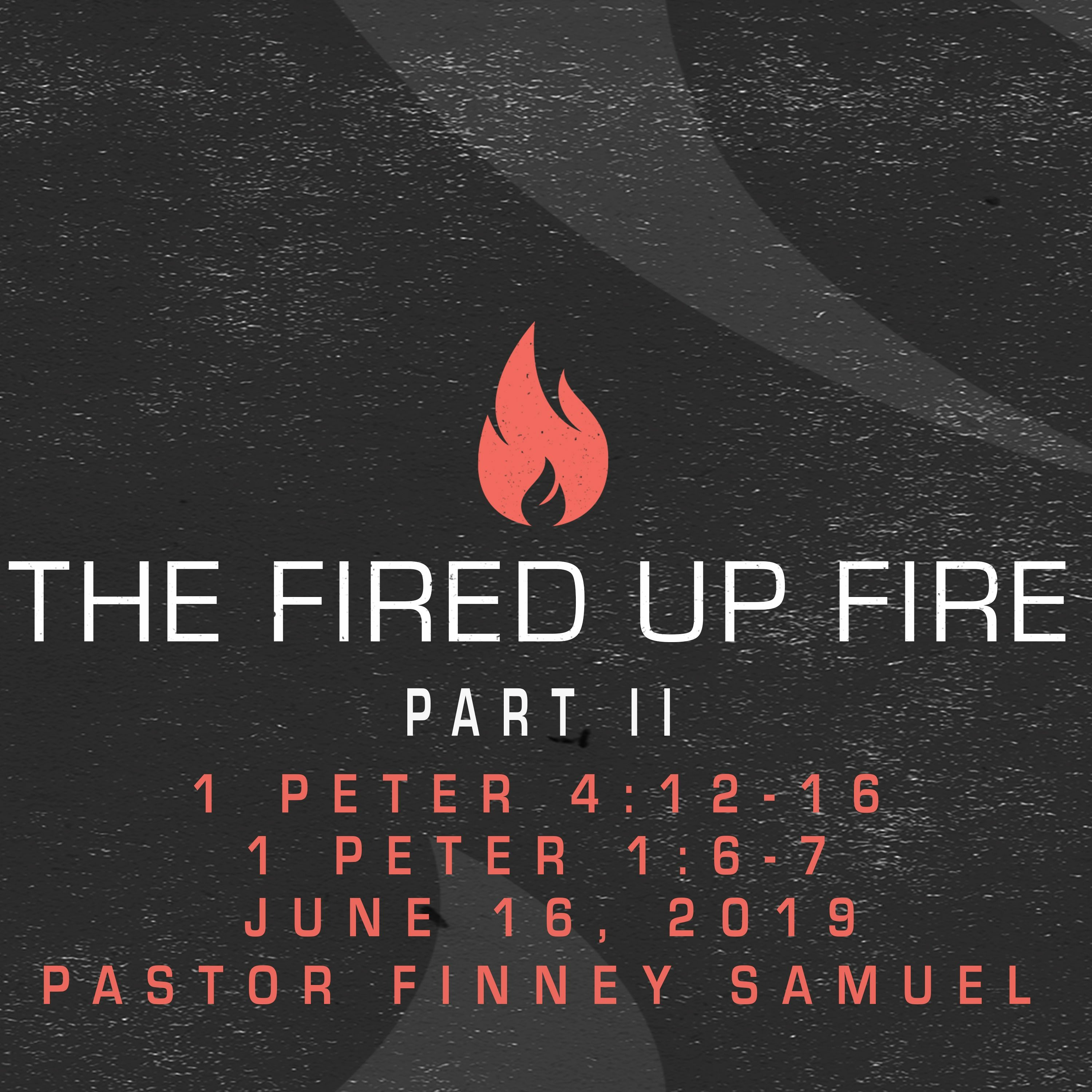 Pastor Finney Samuel speaks from 1 Peter 4:12-16 & 1 Peter 1:6-7 titled The Fired Up Fire and the trials of life, continuation from the first part spoken on June 9, 2019