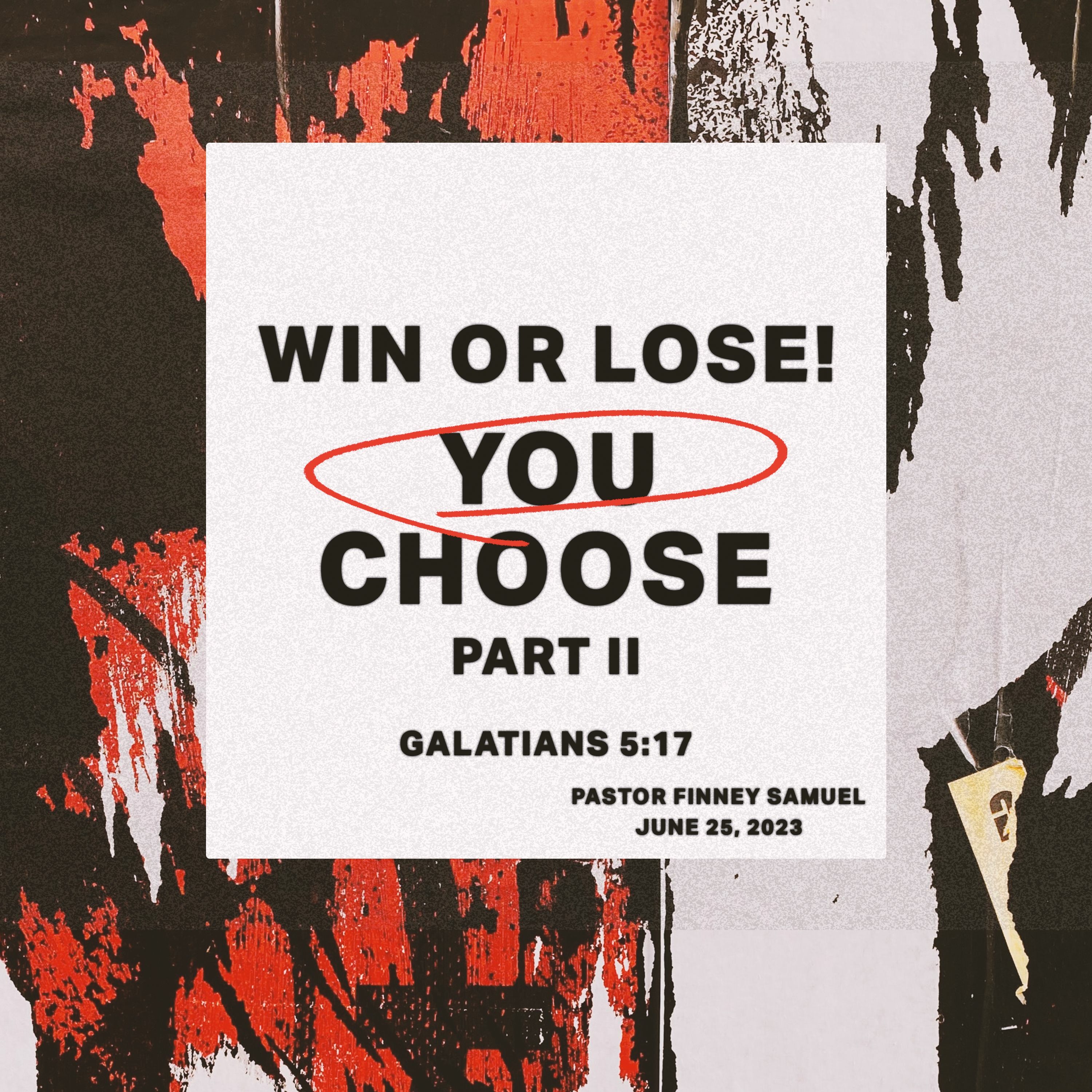 Pastor Finney Samuel speaks from Galatians 5:16, 17 titled Win Or Lose! You Choose - Part II