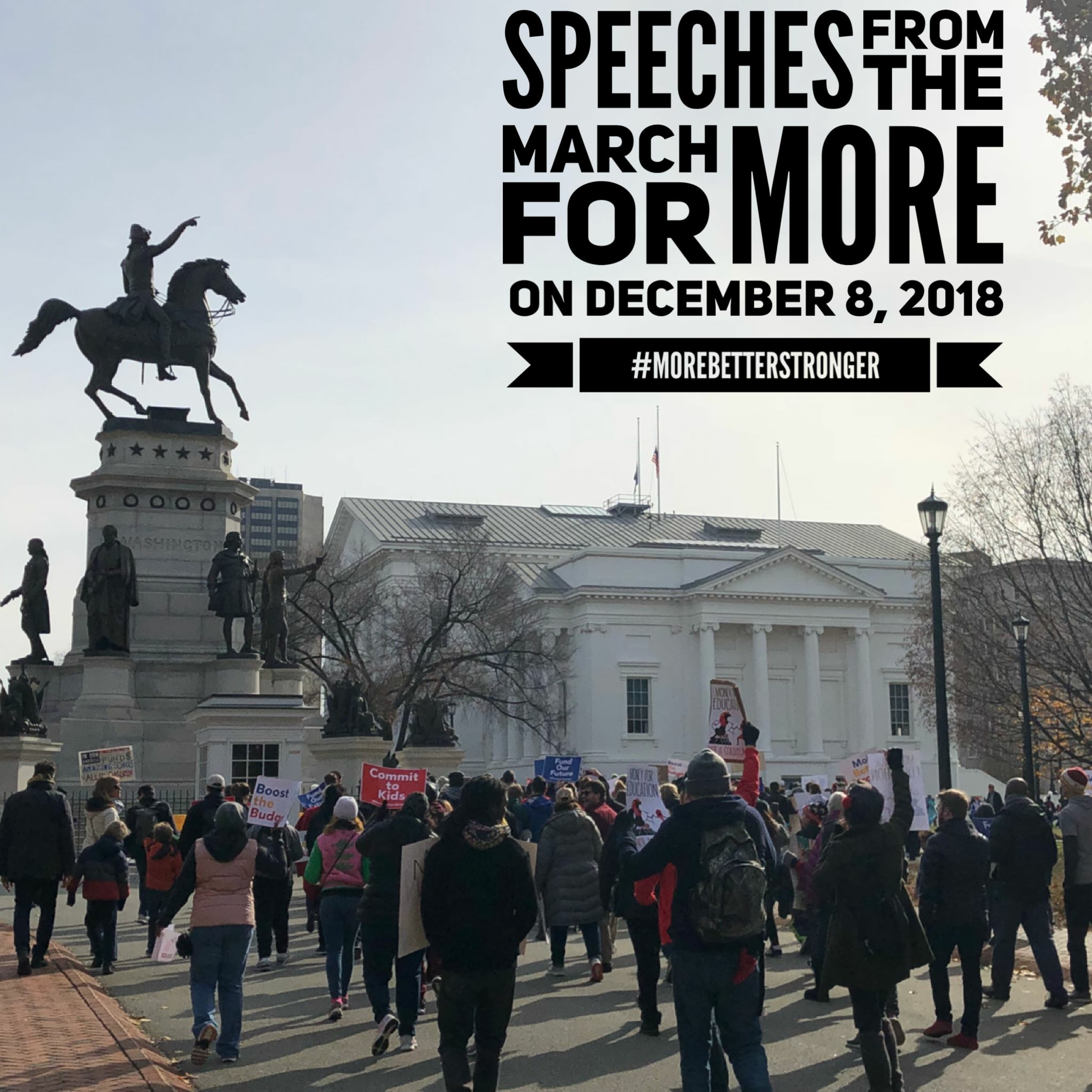 On December 8, 2018 people gathered at Martin Luther King Jr. Middle School to demand the General Assembly fulfill its constitutional obligation and fully fund the true cost of education. Before leaving MLK Jr Middle, various politicians, teachers, and students gave speeches to get the crowd rallied up. Ultimately the march ended at the Virginia State Capitol where more people gave speeches. In addition to demanding more funding for schools from the General Assembly, some attendees came with the message of funding schools over building a coliseum.