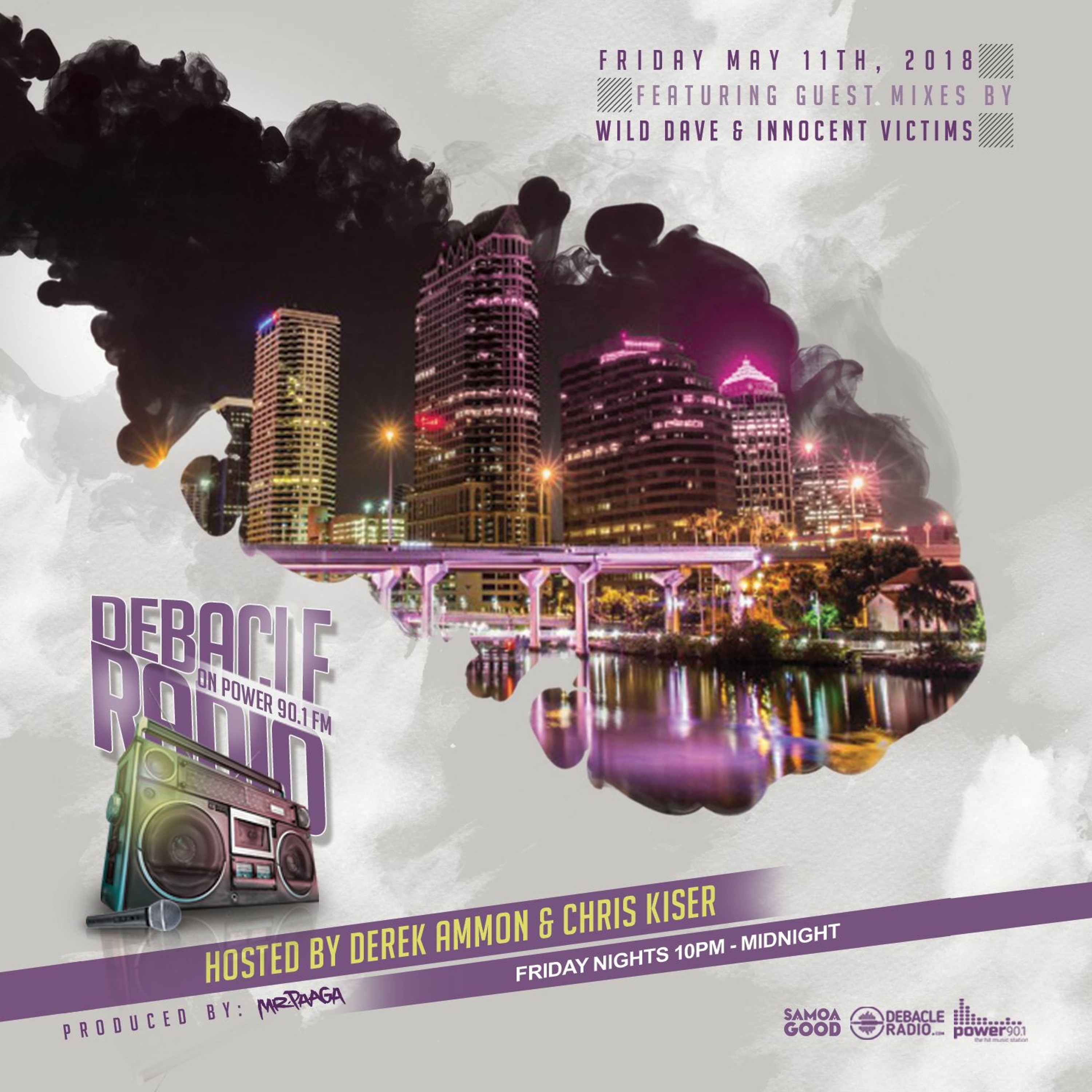 Debacle Radio, based in Tampa Bay is hosted by Derek Ammon & Chris Kiser. The show is produced by Gabriel Paaga. Debacle Radio focuses on a broad range of cutting edge electronic dance genres as well as EDM club hits and remixes. The show features exclusive guest mixes, new weekly releases, interviews, a top 5 countdown as well as featuring a “lit track of the week”, throwback track and Samoa Good Music’s “Good people, good Vibe track of the week”.