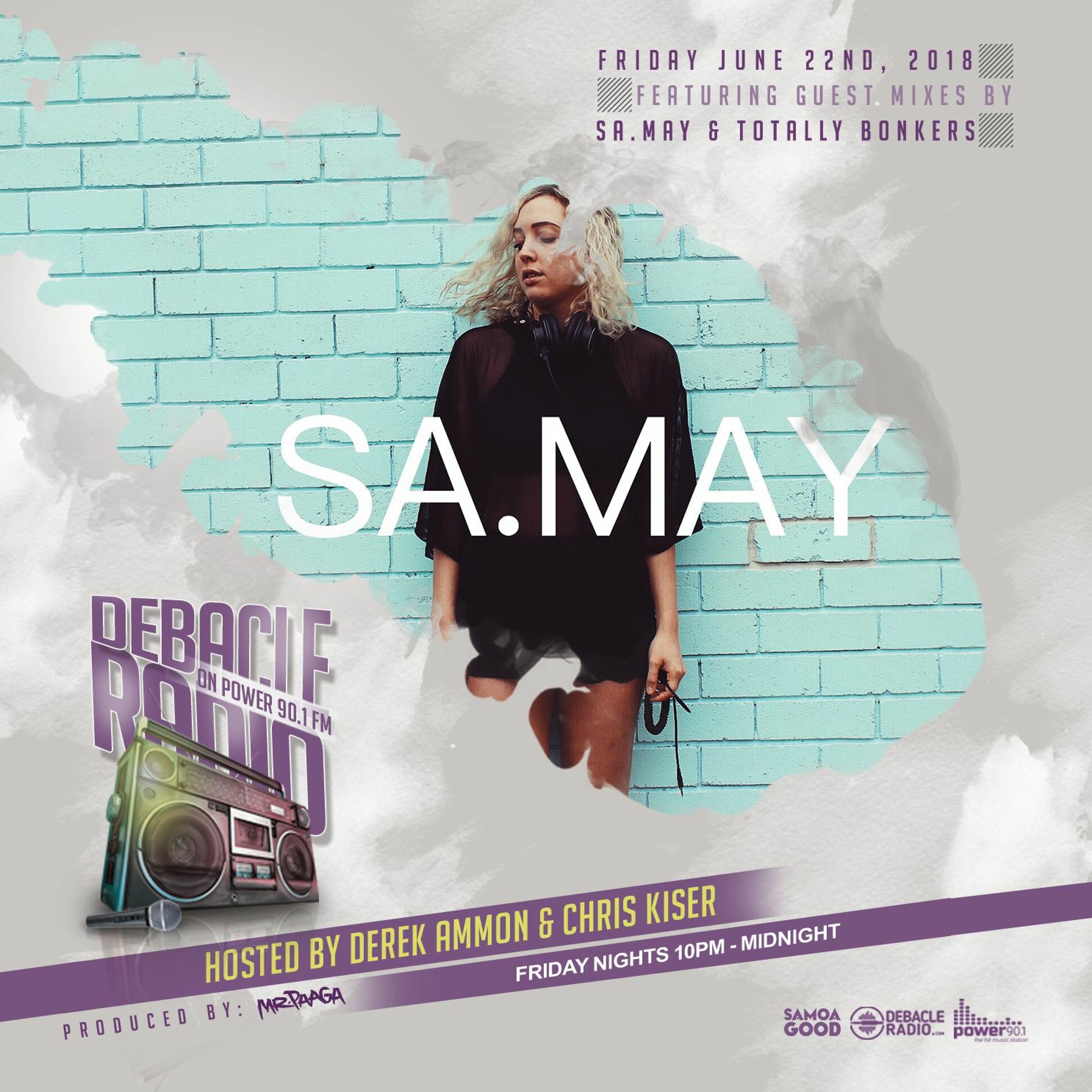Debacle Radio, based in Tampa Bay Florida and is hosted by Derek Ammon & Chris Kiser. The show is produced by Gabriel Paaga (Samoa Good Music). Debacle Radio focuses on a broad range of cutting edge electronic dance genres as well as EDM club hits and remixes. The show features exclusive guest mixes, new weekly releases, interviews, the Debacle Radio's Top 5 Countdown as well as featuring a “LIT Track of the Week”, Throwback Track and the Samoa Good Music’s “Good people, Good Vibe track of the Week”.