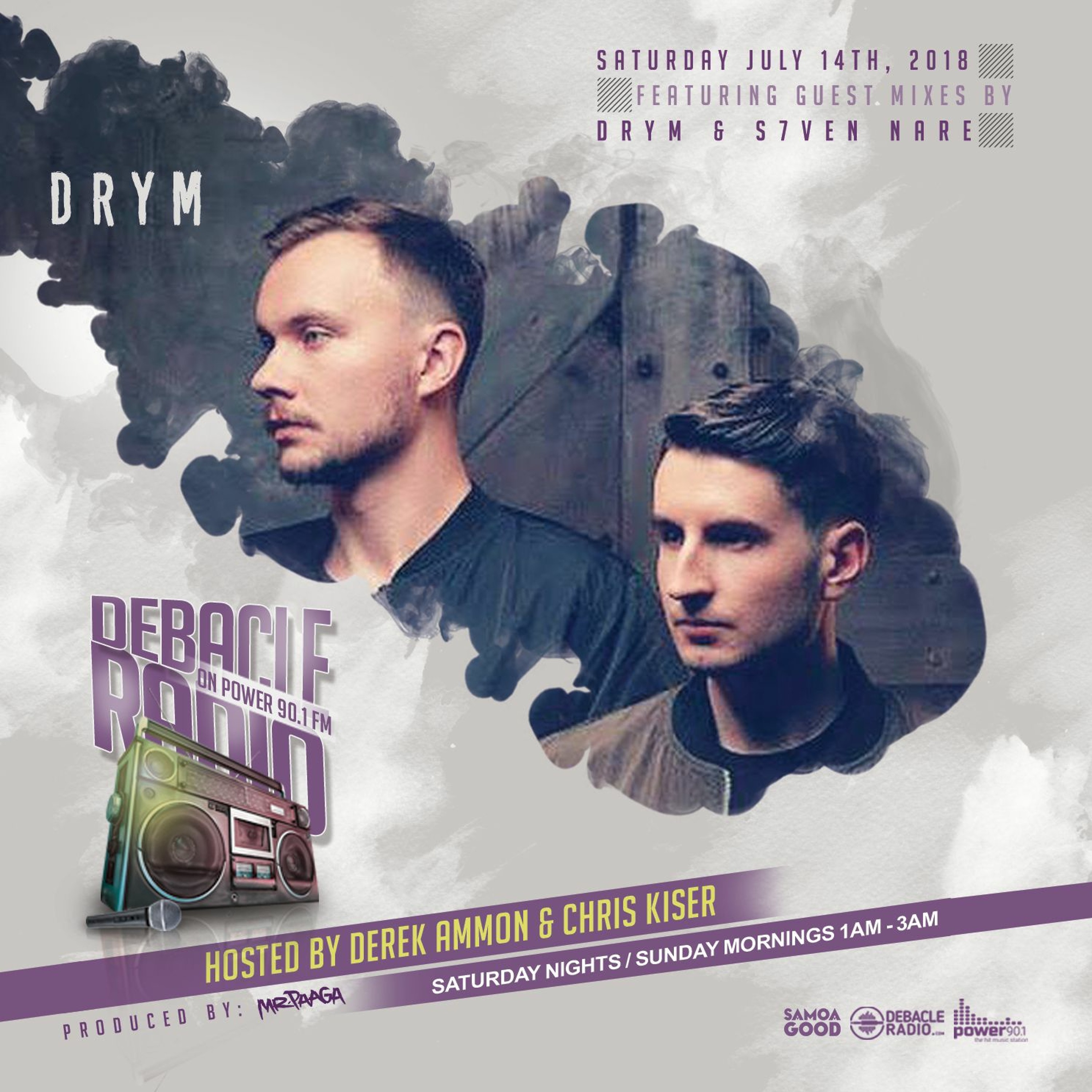 Debacle Radio, based in Tampa Bay Florida and is hosted by Derek Ammon & Chris Kiser. The show is produced by Gabriel Paaga (Samoa Good Music). Debacle Radio focuses on a broad range of cutting edge electronic dance genres as well as EDM club hits and remixes. The show features exclusive guest mixes, new weekly releases, interviews, the Debacle Radio's Top 5 Countdown as well as featuring a “LIT Track of the Week”, Throwback Track and the Samoa Good Music’s “Good people, Good Vibe track of the Week”.