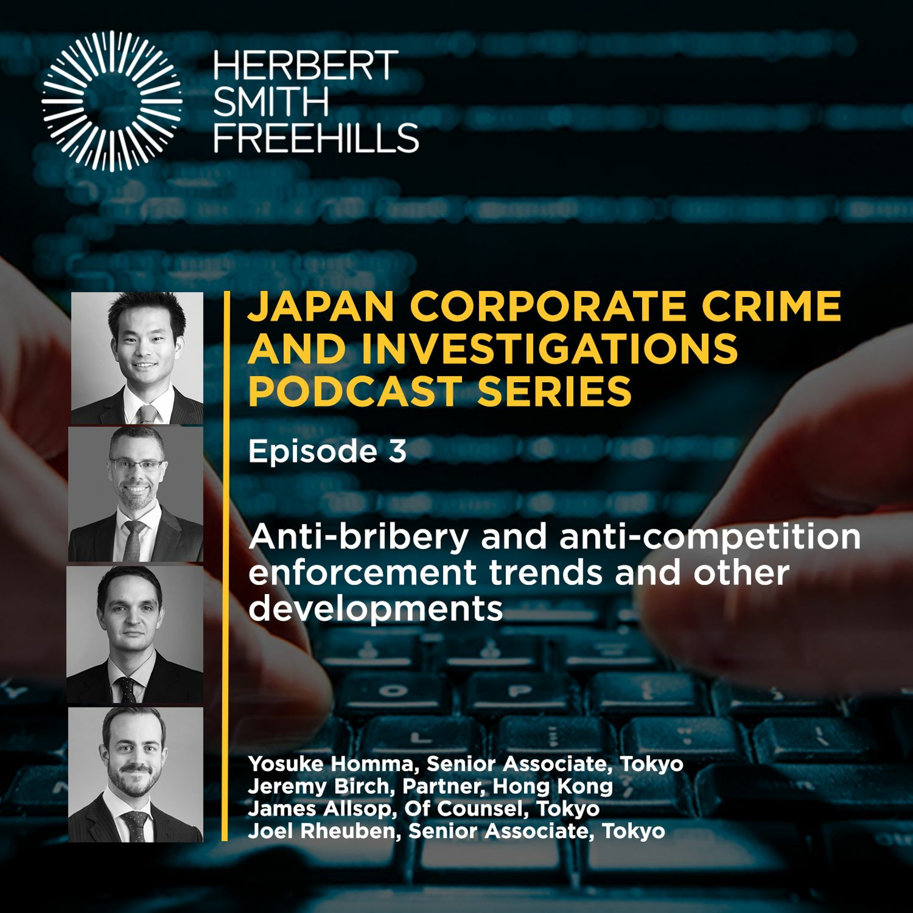In the third episode of our Japan Corporate Crime and Investigations Podcast Series, Yosuke Homma https://www.herbertsmithfreehills.com/our-people/yosuke-homma hosts Jeremy Birch https://www.herbertsmithfreehills.com/our-people/jeremy-birch, James Allsop https://www.herbertsmithfreehills.com/our-people/james-allsop and Joel Rheuben https://www.herbertsmithfreehills.com/our-people/joel-rheuben to discuss these issues.