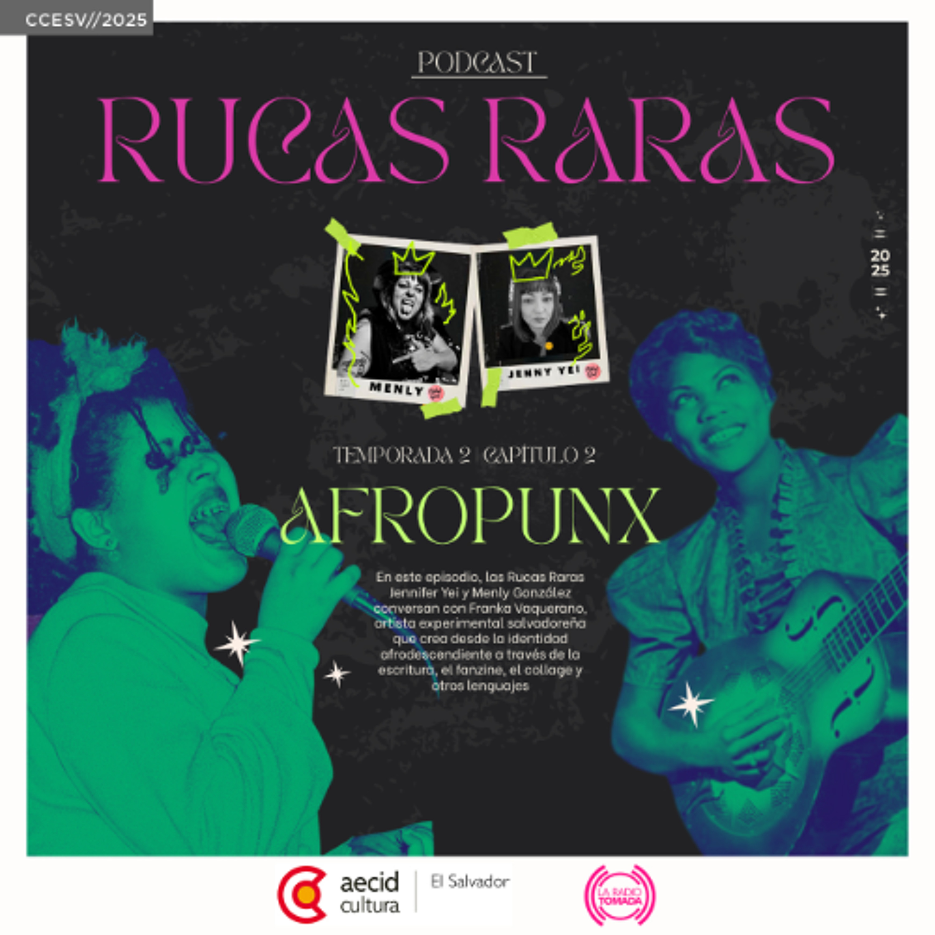 En este episodio, las Rucas Raras Jennifer Yei y Menly González conversan con Franka Vaquerano, artista experimental salvadoreña que crea desde la identidad afrodescendiente a través de la escritura, el fanzine, el collage y otros lenguajes.