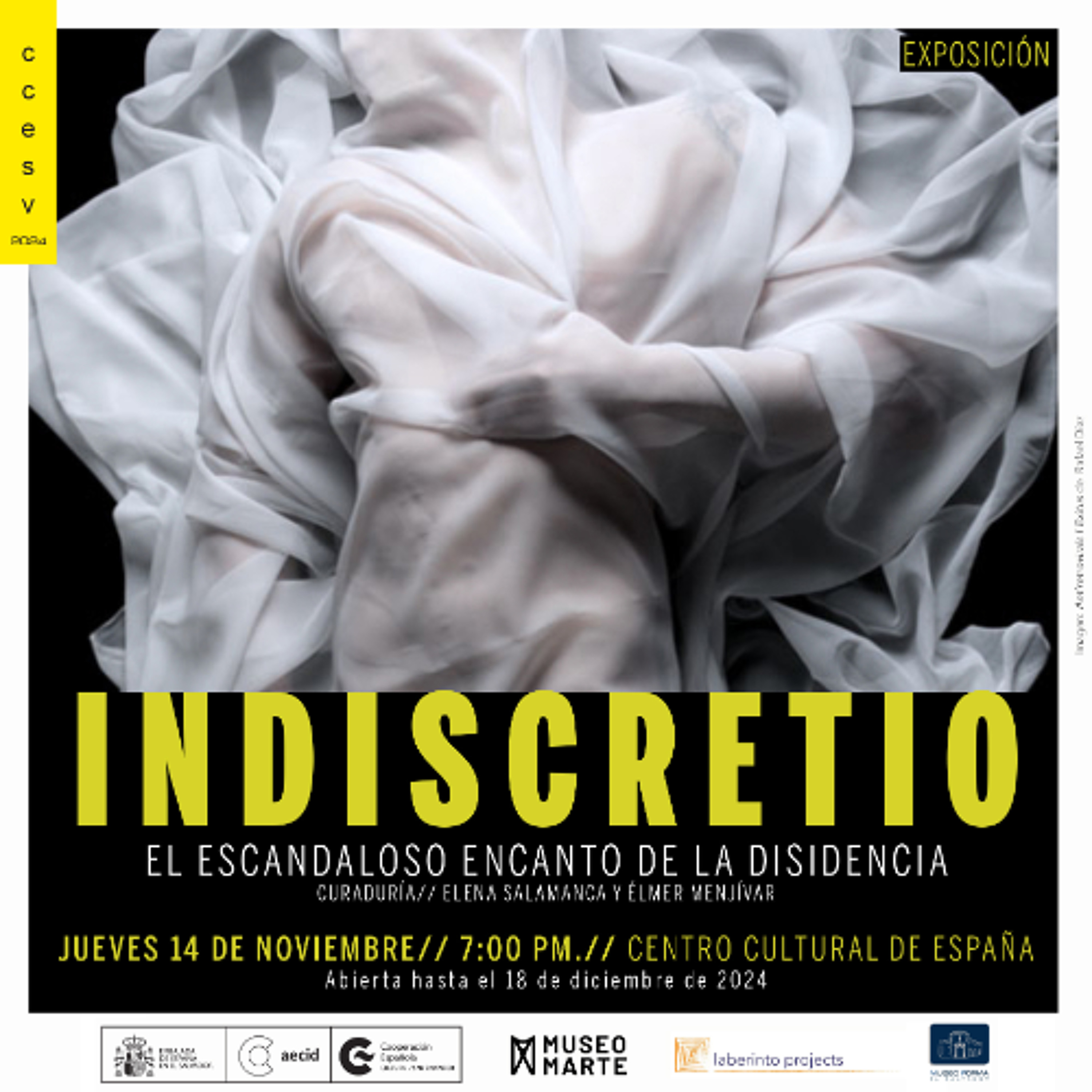 La exposición «Indiscretio, el escandaloso encanto de la disidencia» también contará con una visita guiada abierta al público el jueves 21 de noviembre, a las 10:00 a.m.. Este recorrido estará a cargo del escritor, periodista y curador Élmer Menjívar.