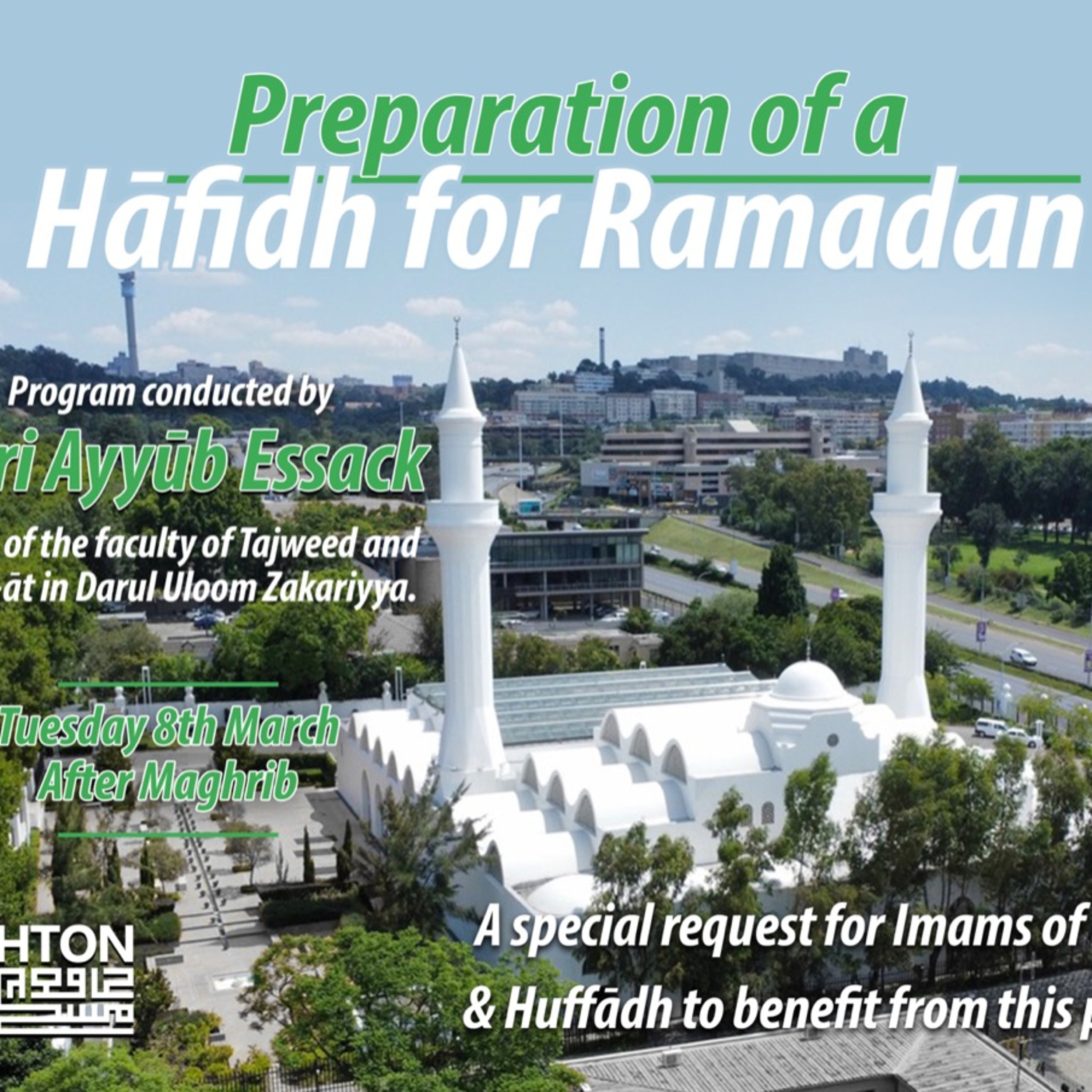 Preparation of a Hāfidh for Ramadan - Program conducted by Qari Ayyūb Essack, the Head of the faculty of Tajweed and Qira-āt in Darul Uloom Zakariyya.
