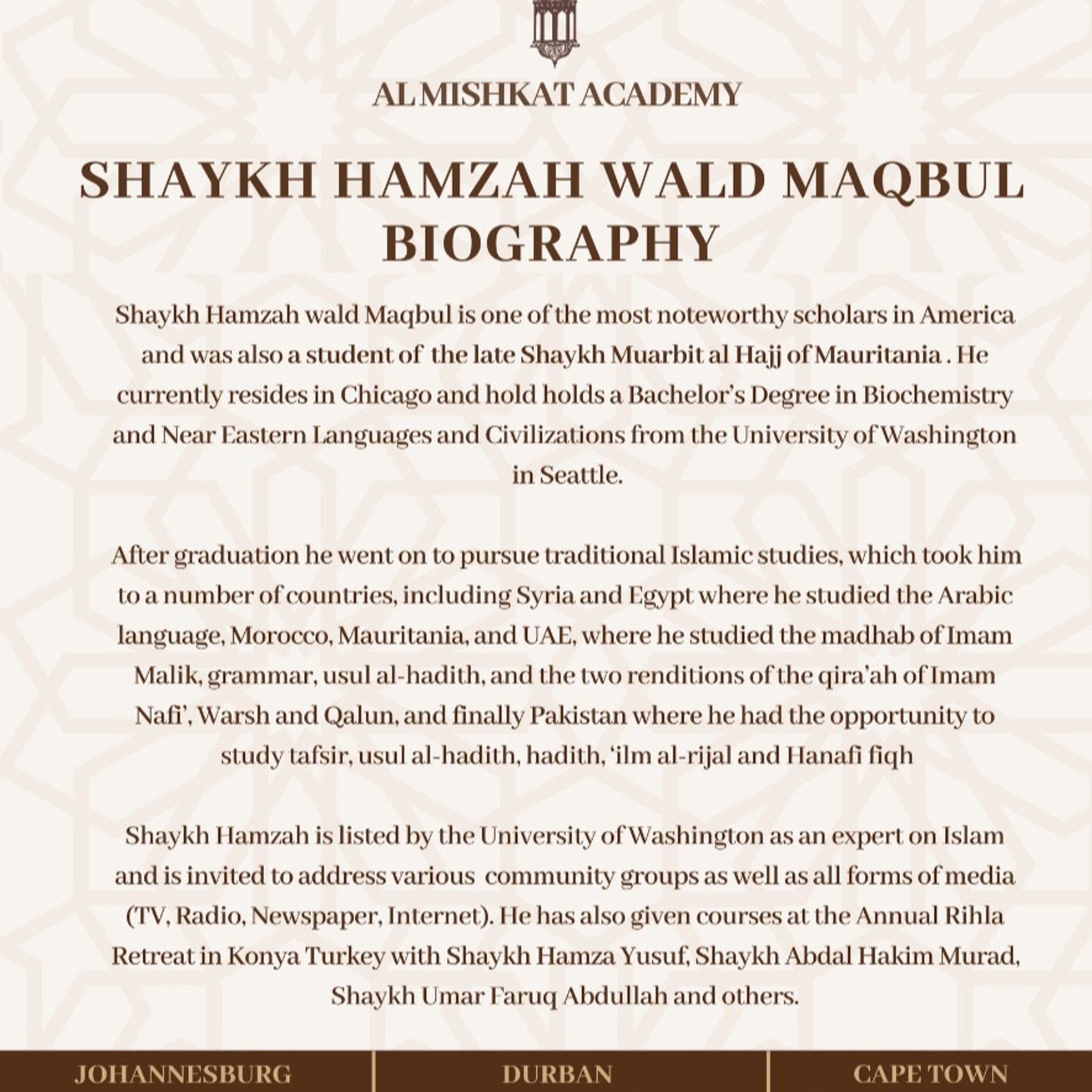 Shaykh Hamzah Wald Maqbul (USA)