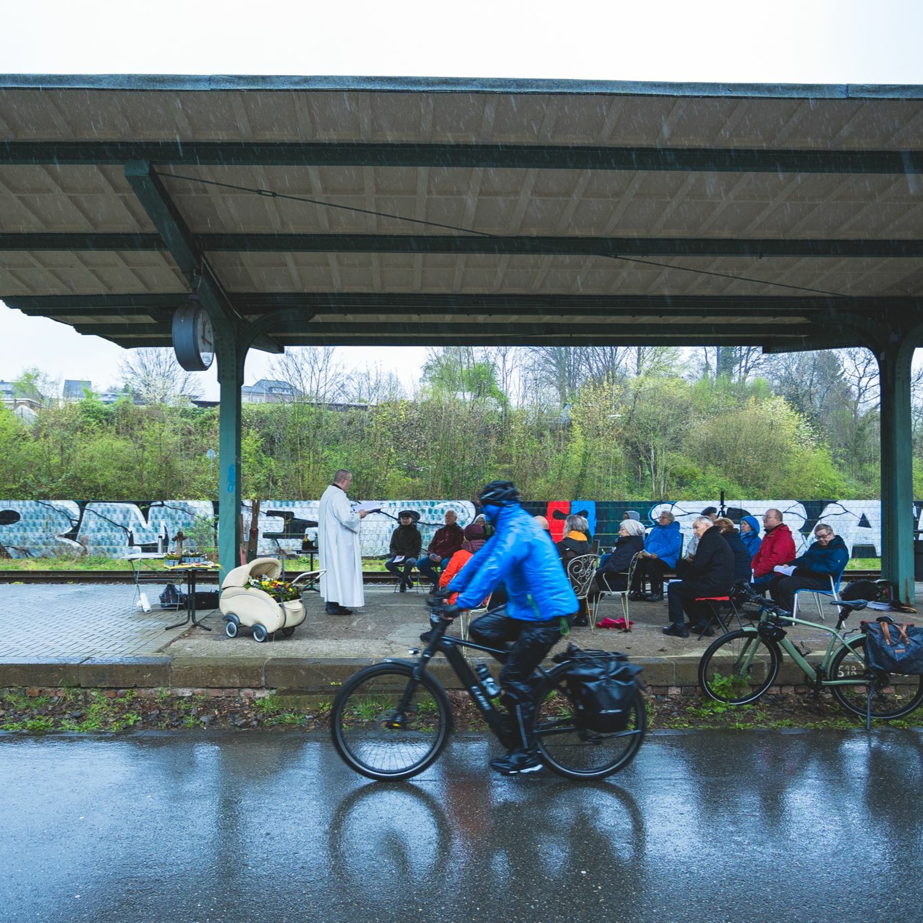 Ostergottesdienst und Mauersegnung an Martin Michels Steingarten am 1. April 2024, mit Dr. Werner Kleine.