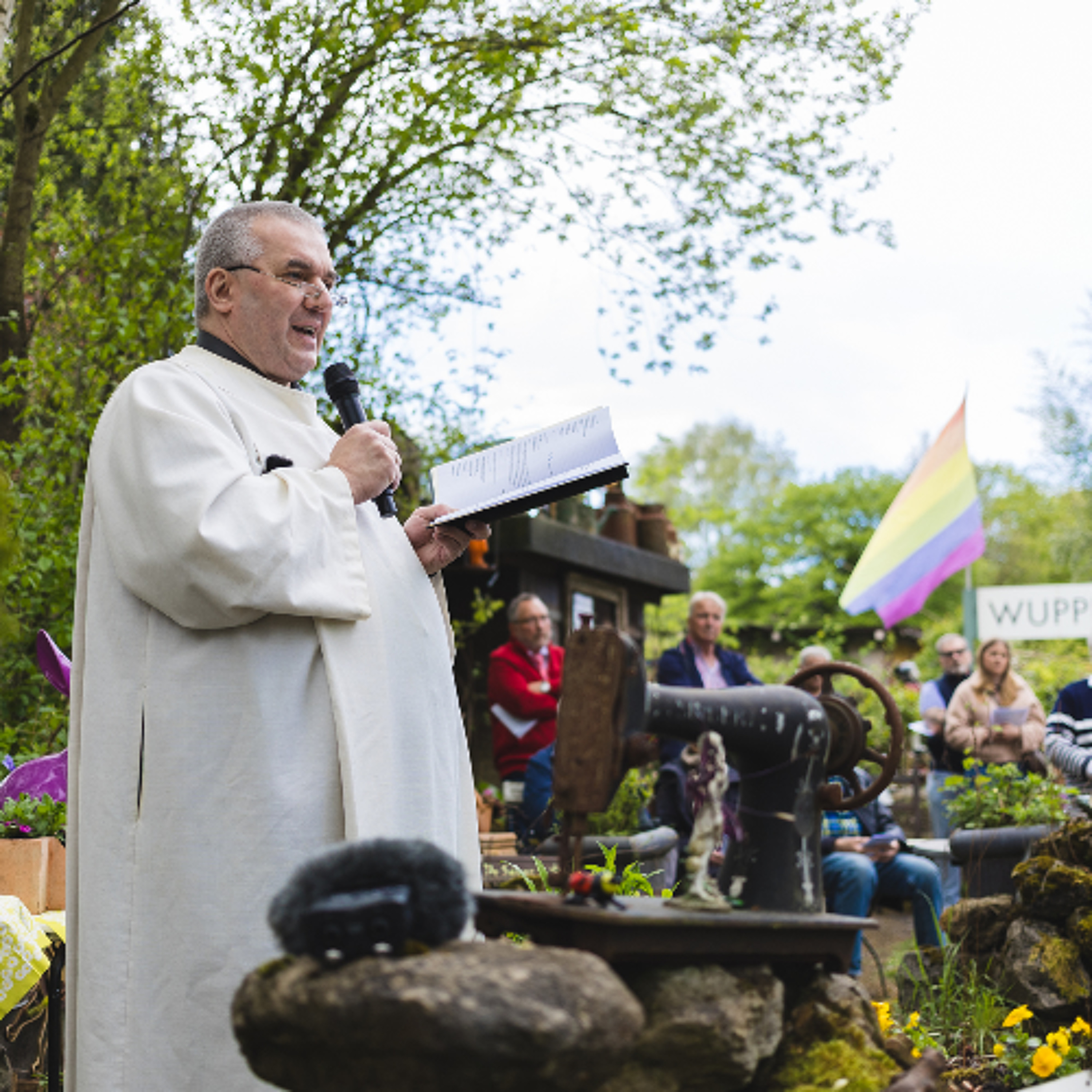 Ostergottesdienst und Mauersegnung an Martin Michels Steingarten am 21. April 2025, mit Dr. Werner Kleine.