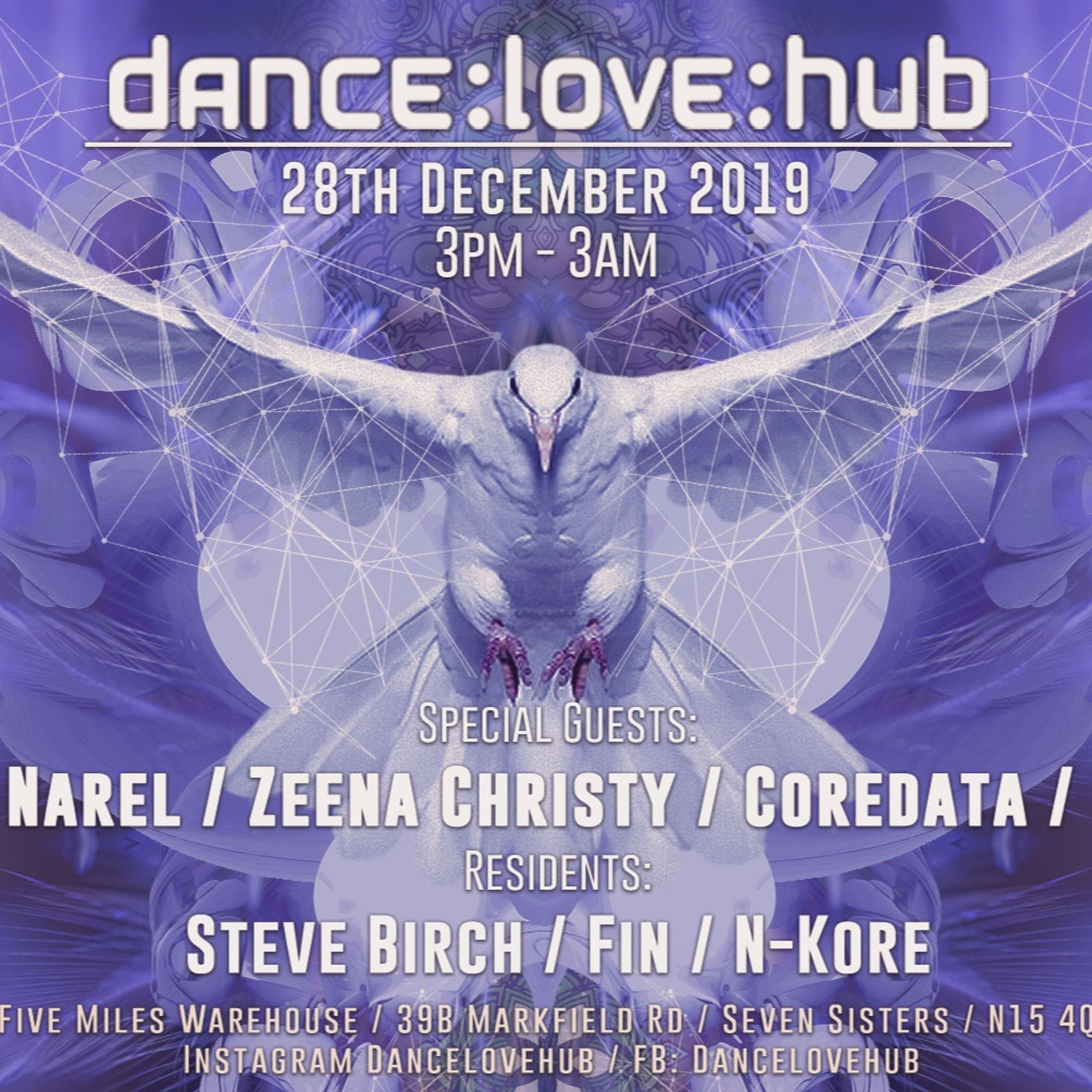 Here's my set from the fantastic dance:love:hub Xmas Party at Five Miles in Tottenham, London (28th December 2019). It was a full 12 hours of music heaven, surrounded by lovely people and stunning artwork and I have to admit to being absolutely shattered by the end. Every single DJ smashed it and I couldn't stop dancing from 3pm until about 2am, when my legs finally gave out; it was an honour to be on the decks with my fellow residents and our excellent guests. My set was the bridge between the techno /prog and the psytrance from 9-10:30pm. Enjoy!