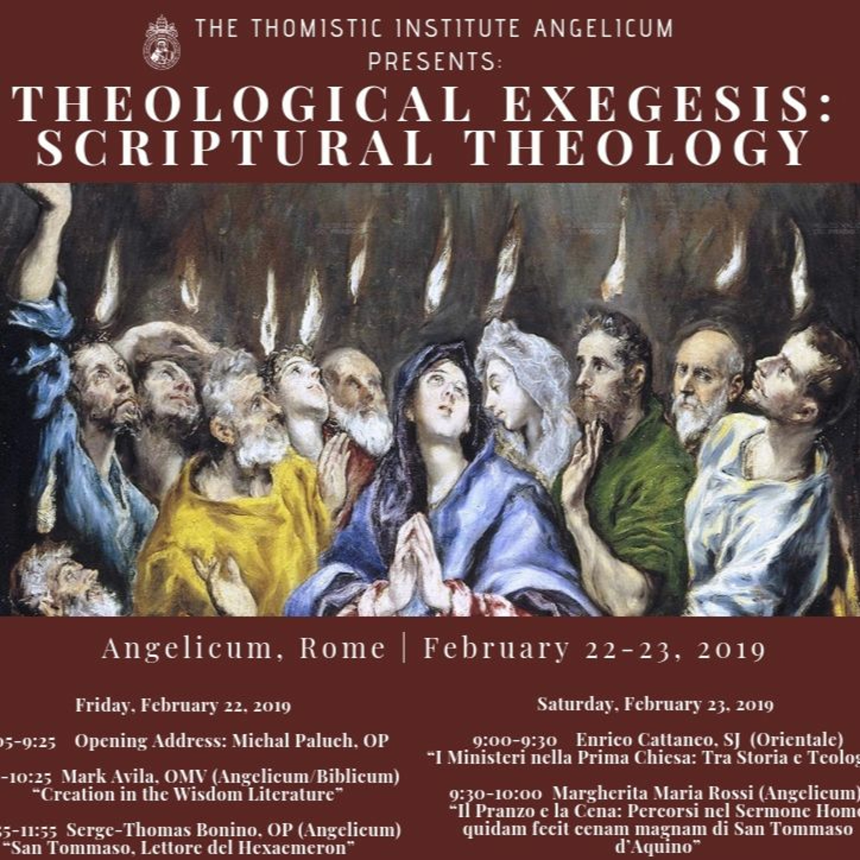 This conference invited scholars from multiple academic institutions to address fundamental themes in theology from the perspective of Scriptural exegesis. The goal was to establish a basis for theological exegesis (the mutually enriching reunion of theology and exegesis).