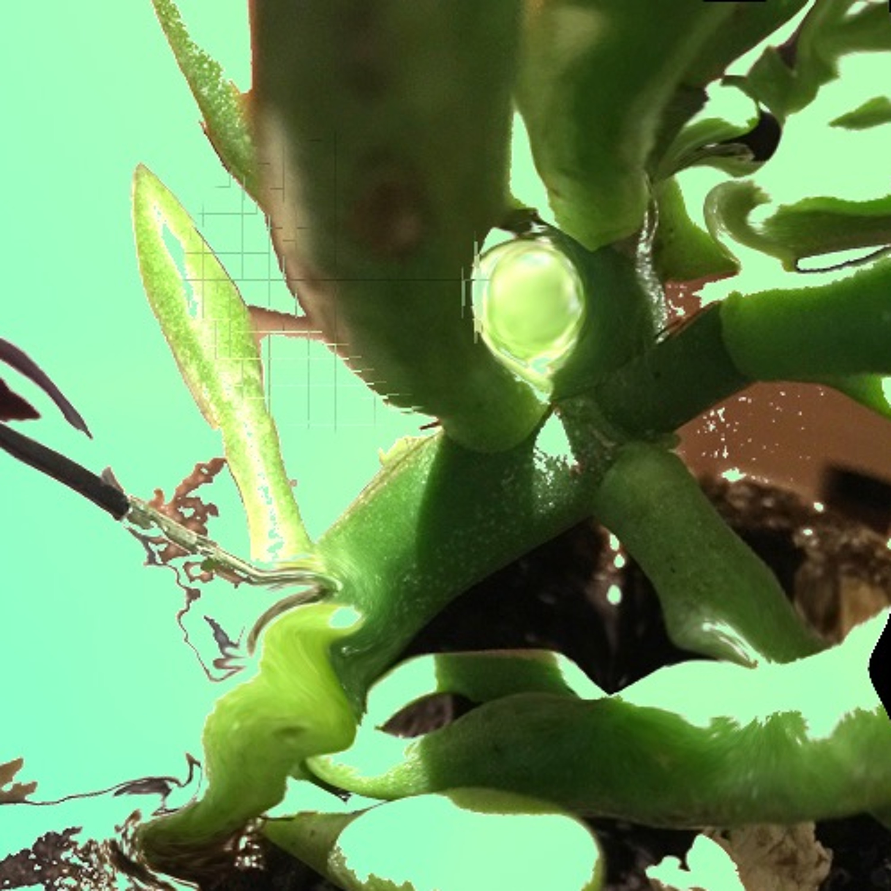 Lately, we've been researching electrodes. Nano, micro, tiny, made of fine silver and gold. For this biodata recording, we used needle-fine silver electrodes. The electrodes, like hypodermic needles, were placed within the roots of our Crassula portulacea (Shrek plant!). As well as experimenting with various electrodes we have started to work with Phonemes. Soon: Fungi (non-human intelligence) and AI triggered speech.