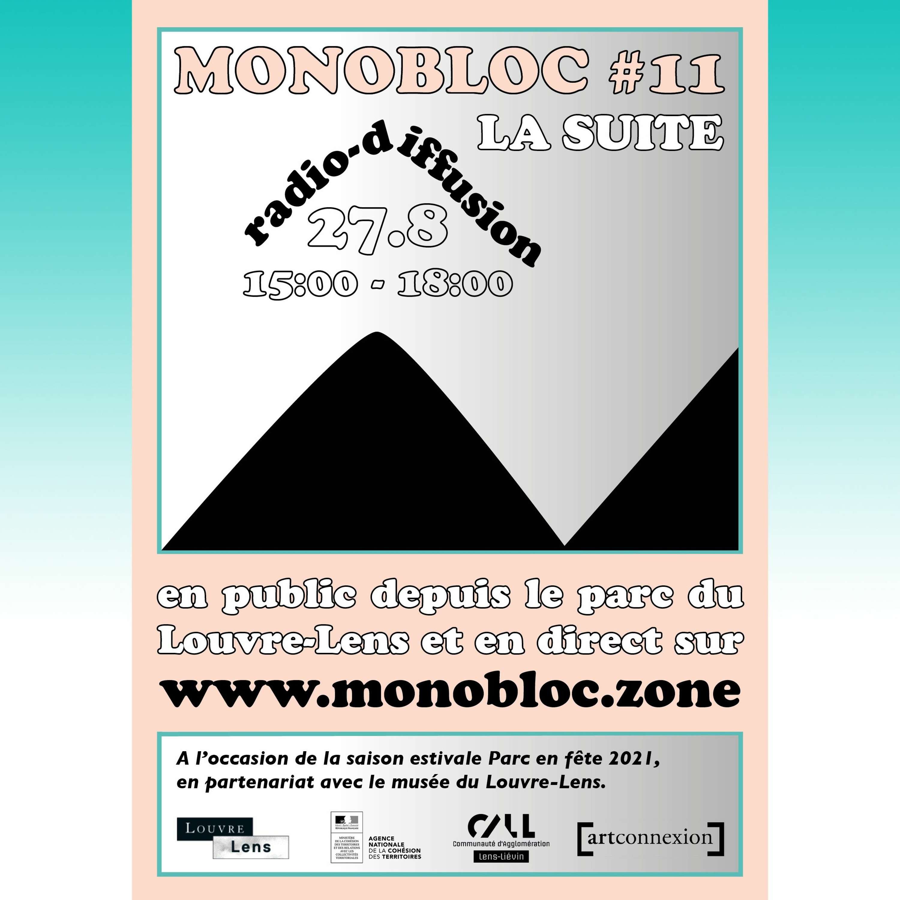 Le 27 août 2021, Monobloc émet depuis son plateau mobile en direct du Parc du Louvre-Lens, à l’occasion de la saison estivale "Parc en fête 2021".