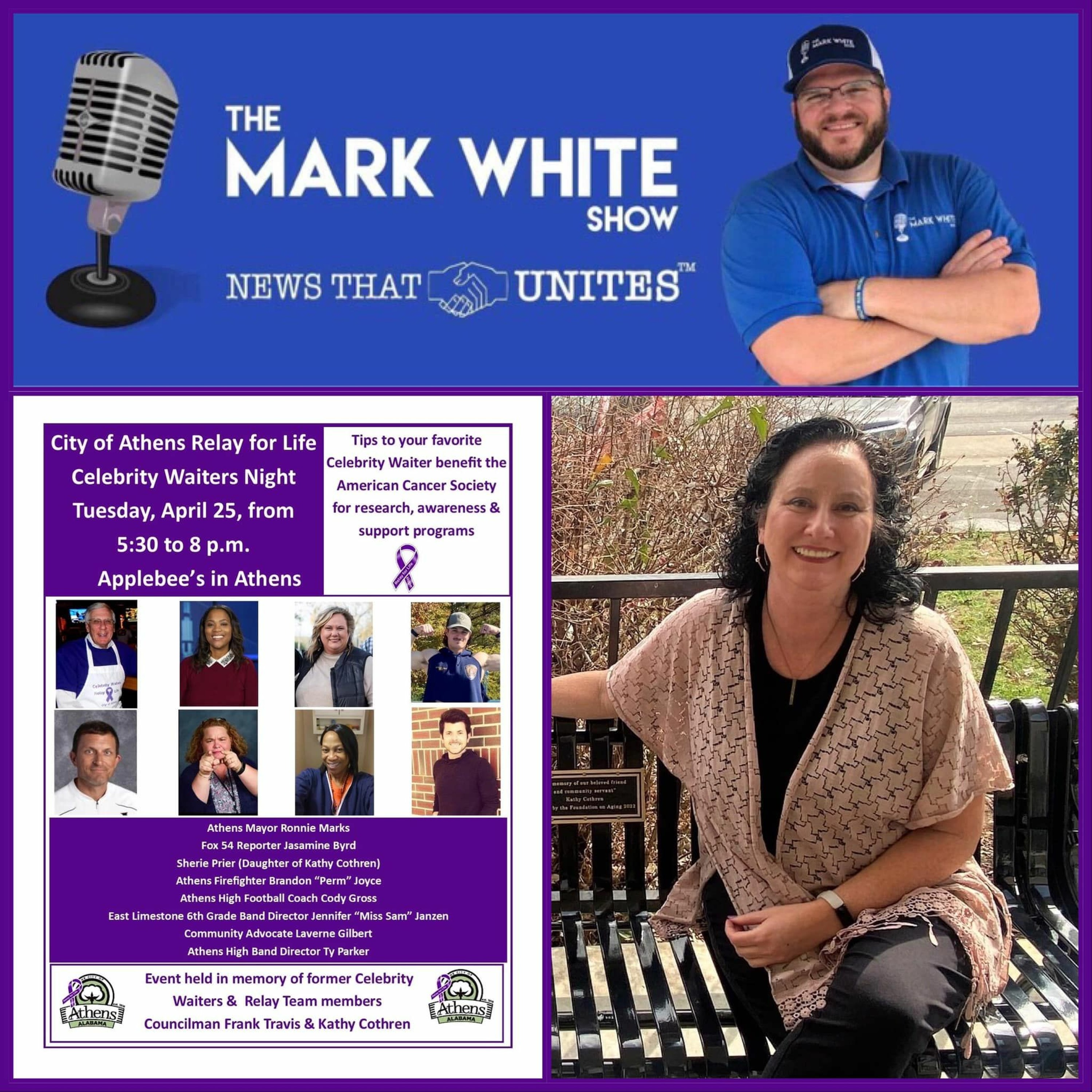 On tonight’s show, I’m coming to you from City of Athens, Alabama, city hall. I’m speaking with Holly Hollman about Relay for Life of Limestone County, Alabama, and their upcoming fundraiser at Applebee’s tomorrow night and the survivors dinner and walk coming up on May 12th. I hope you will listen and share.
