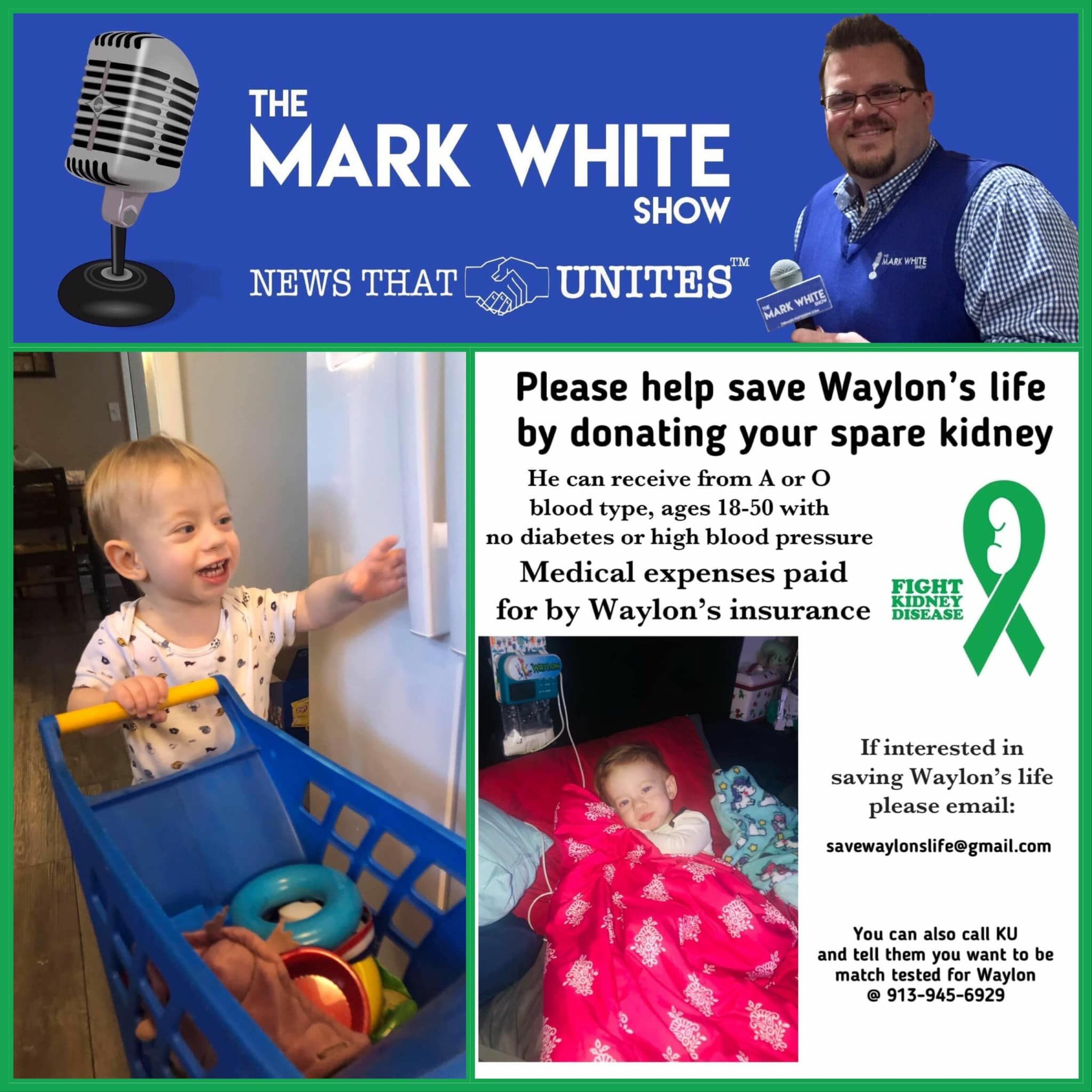 On today's MADM, we are headed to the state of Missouri to talk to Danielle Bonnell about her 2-year-old son, Waylon, who currently needs an A or O blood type kidney donor 18-50 years old to save his life. If you are not A or O blood type, you can still get tested and donate through the kidney pair/exchange program for Waylon. Be sure to tune in right here this afternoon at 5 p.m. CST/6 p.m. EST for the full conversation. Please share.