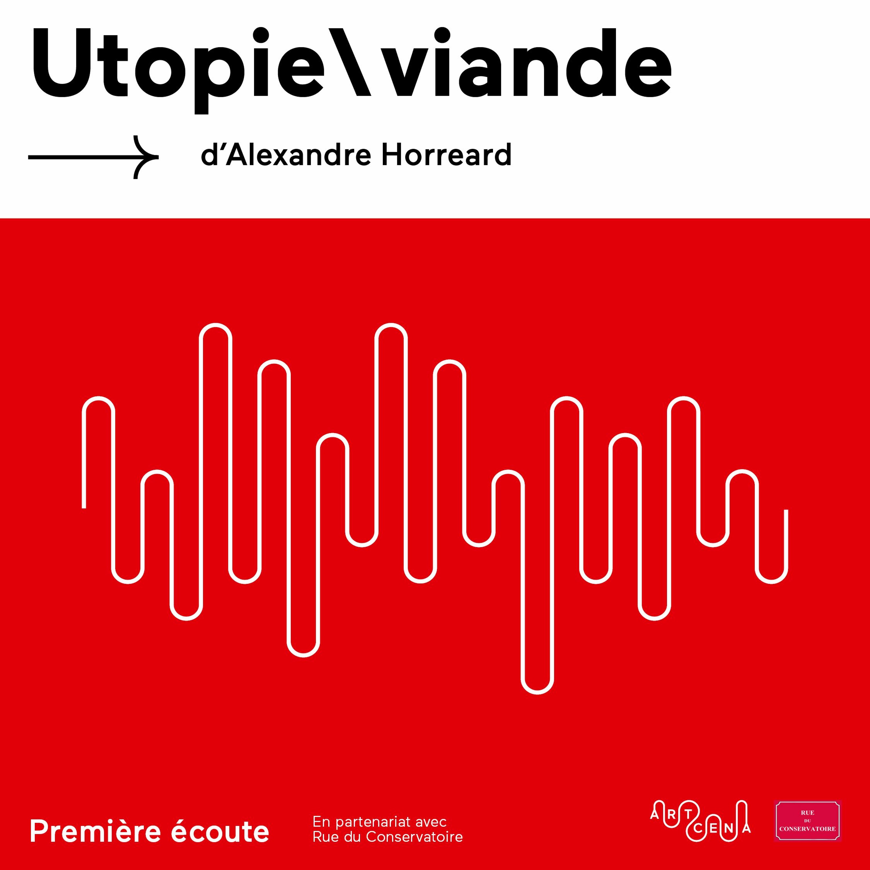 ARTCENA et Rue du Conservatoire présentent « Première écoute », un rendez-vous audio pour découvrir un texte lauréat de l'Aide nationale à la création de textes dramatiques. Découvrez le texte « Utopie \ viande » de Alexandre Horréard, lecture dirigée par Florence Payros, lu par Marc Spilmann, Myriam Fichter, Florence Payros et Olivier Augrond de Rue du Conservatoire.