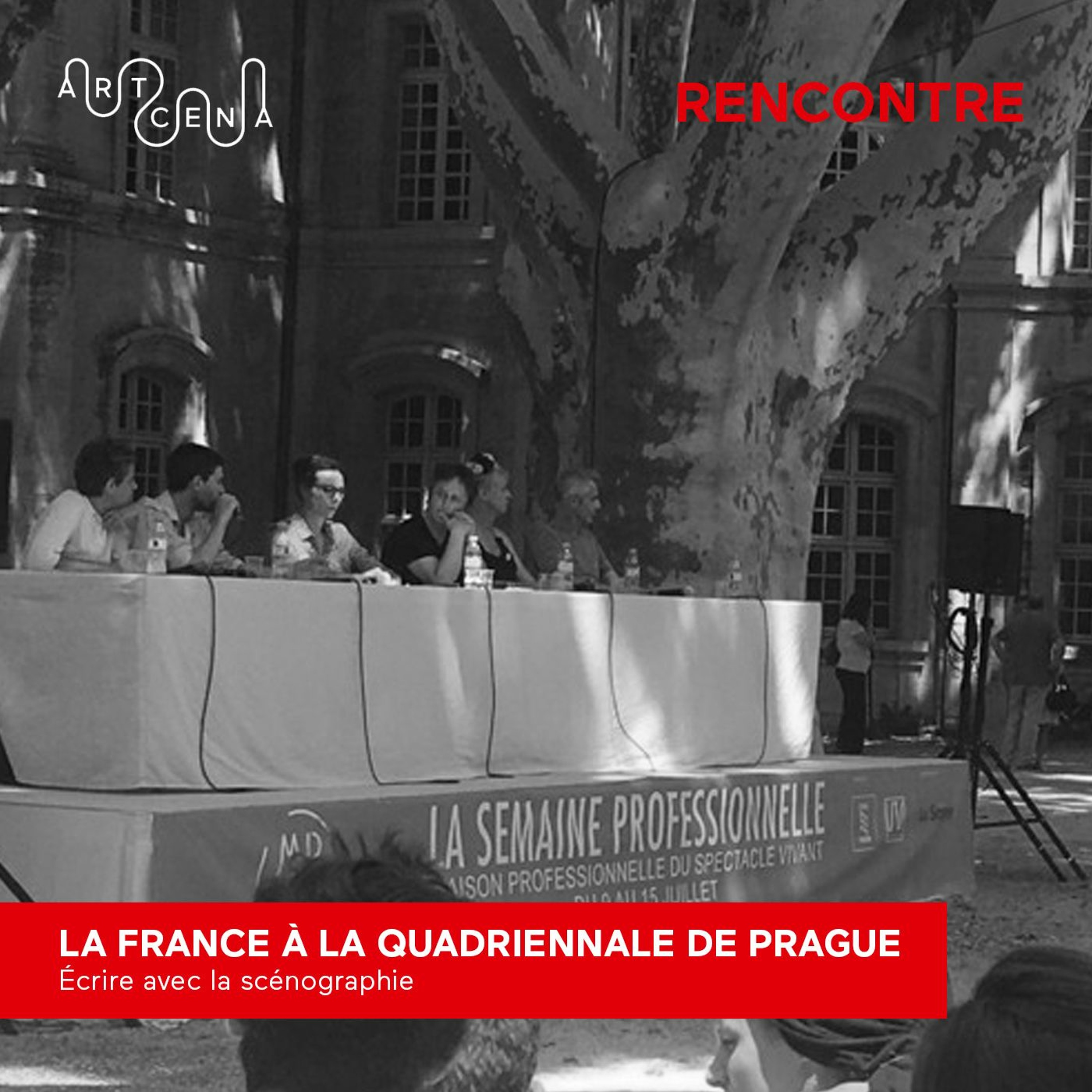ARTCENA présente "Ecrire avec la scénographie", dans le cadre de la Quadriennale de Prague. Débat du 13 juillet 2018 à la Maison Professionnelle du Spectacle vivant du festival d’Avignon, en partenariat avec le ministère de la Culture, l’Institut français et l’Union des scénographes.