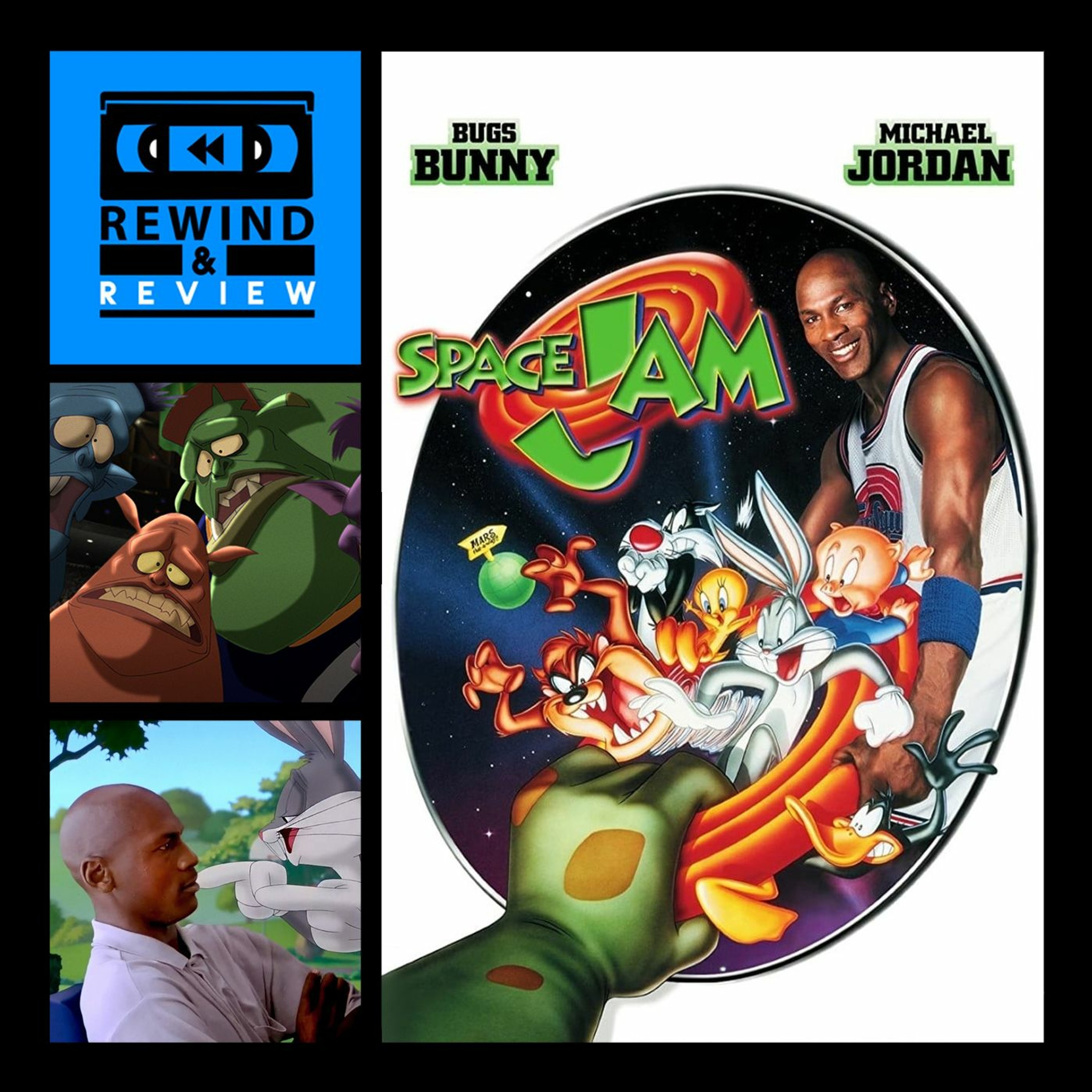 Swackhammer (voiced by Danny DeVito), an evil alien theme park owner, needs a new attraction at Moron Mountain. When his gang, the Nerdlucks, heads to Earth to kidnap Bugs Bunny (Billy West) and the Looney Tunes, Bugs challenges them to a basketball game to determine their fate. The aliens agree, but they steal the powers of NBA basketball players, including Larry Bird and Charles Barkley – so Bugs gets some help from superstar Michael Jordan.