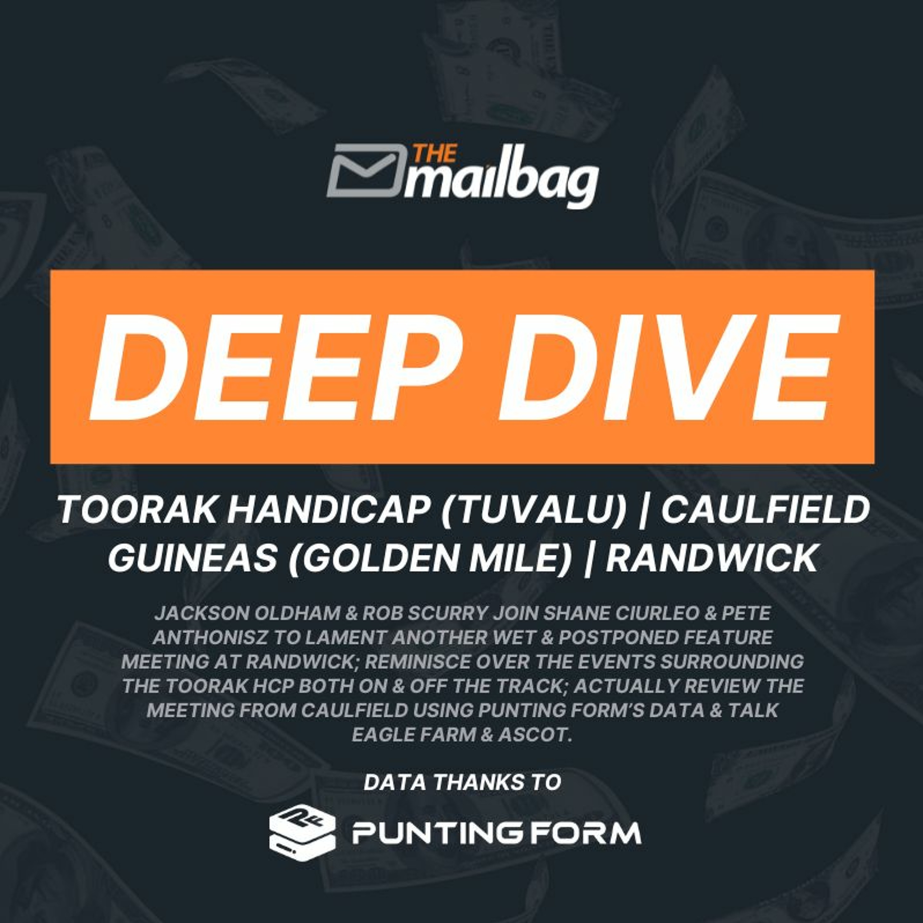 Jackson Oldham & Rob Scurry join Shane Ciurleo & Pete Anthonisz to lament another wet & postponed feature meeting at Randwick (2:58); reminisce over the events surrounding the Toorak HCP both on & off the track (11:08); actually review the meeting from Caulfield using Punting Form’s data, starting with the Toorak (30:22); the Caulfield Guineas (31:52); the Might & Power (38:45); Schillaci Stakes (44:35); Herbert Power (49:45) & talk Eagle Farm & Ascot (53:30).