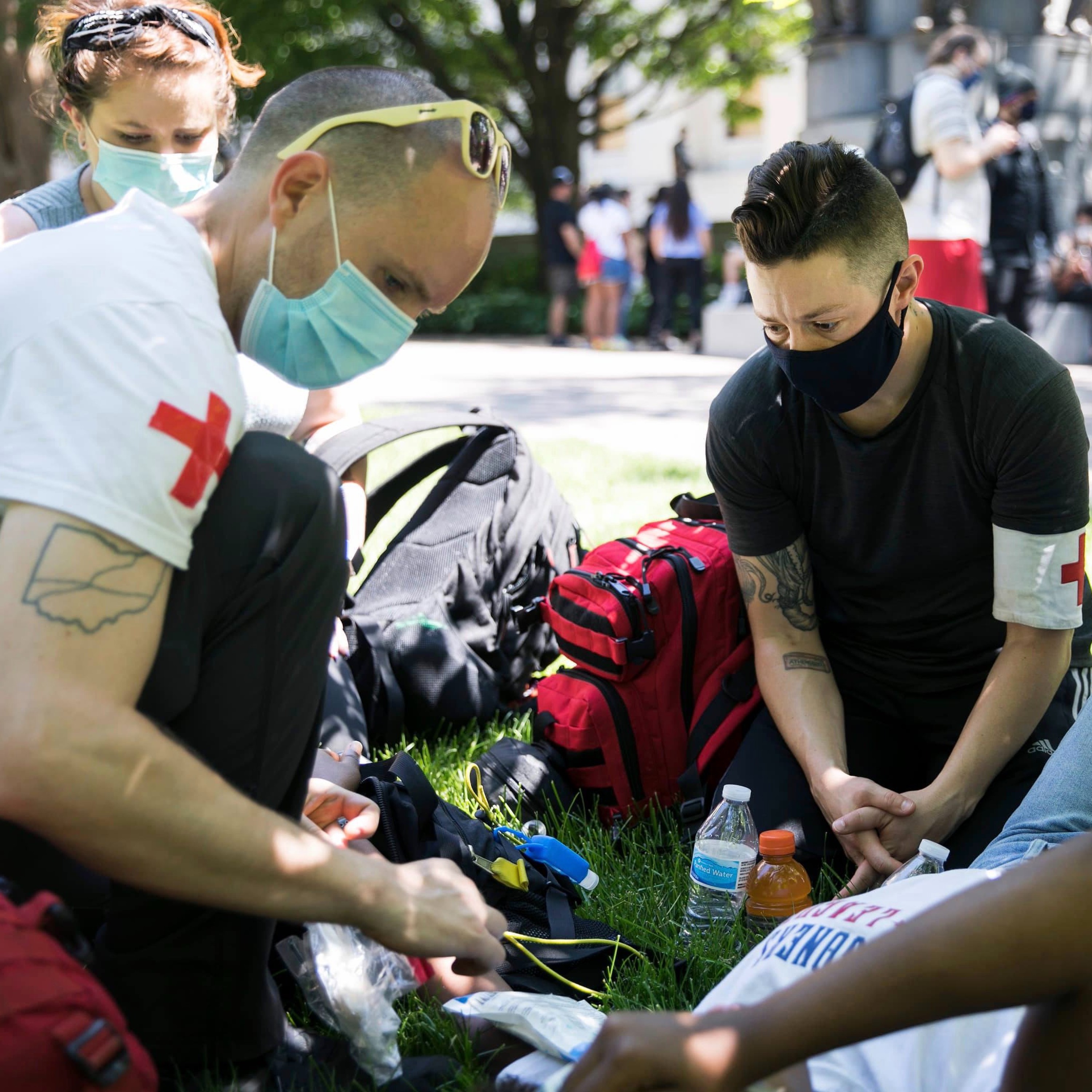 #GrassRoot_Ohio host #CarolynHarding with #AtticusGarden and #DuckBardus - Street Medics, the first responders that are there for You and Me, for anyone who may get hurt during a Street Protest.