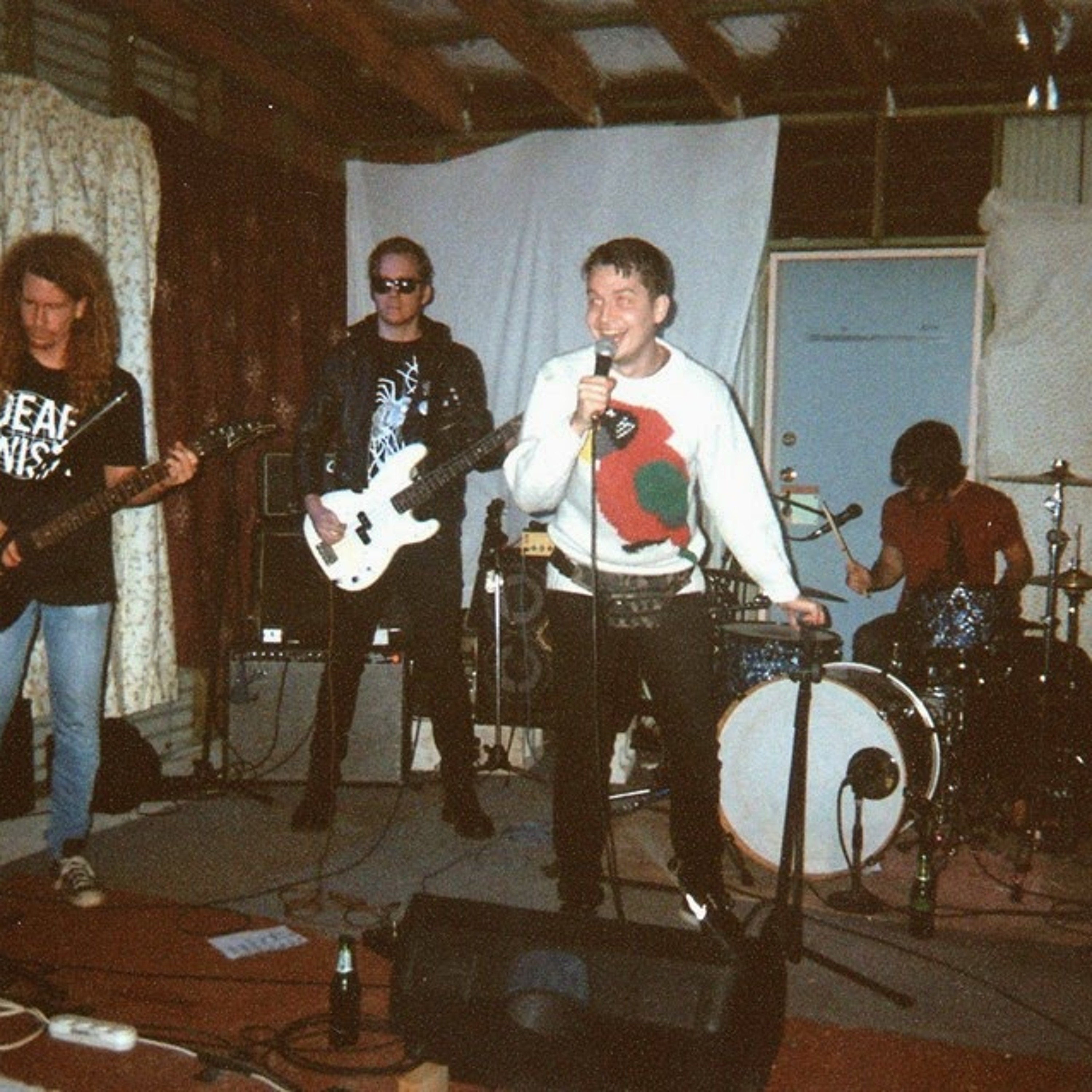 There are 6 members of Unpeople – no one really knows why, but it works. Unpeople are pretty peculiar in the world of punk. Sean Campion, who is best known for Multiple Man (a synth duo with his twin brother) fronts the group. Every show they play he stares directly at the crowd with this sick grin on his face, his eyes as wide as. It’s a particularly jarring look when paired with a bumbag and a parrot sweater. Behind him stand some blokes who’ve played in Occults, Woodboot and Last Chaos – a solid dump of tough.