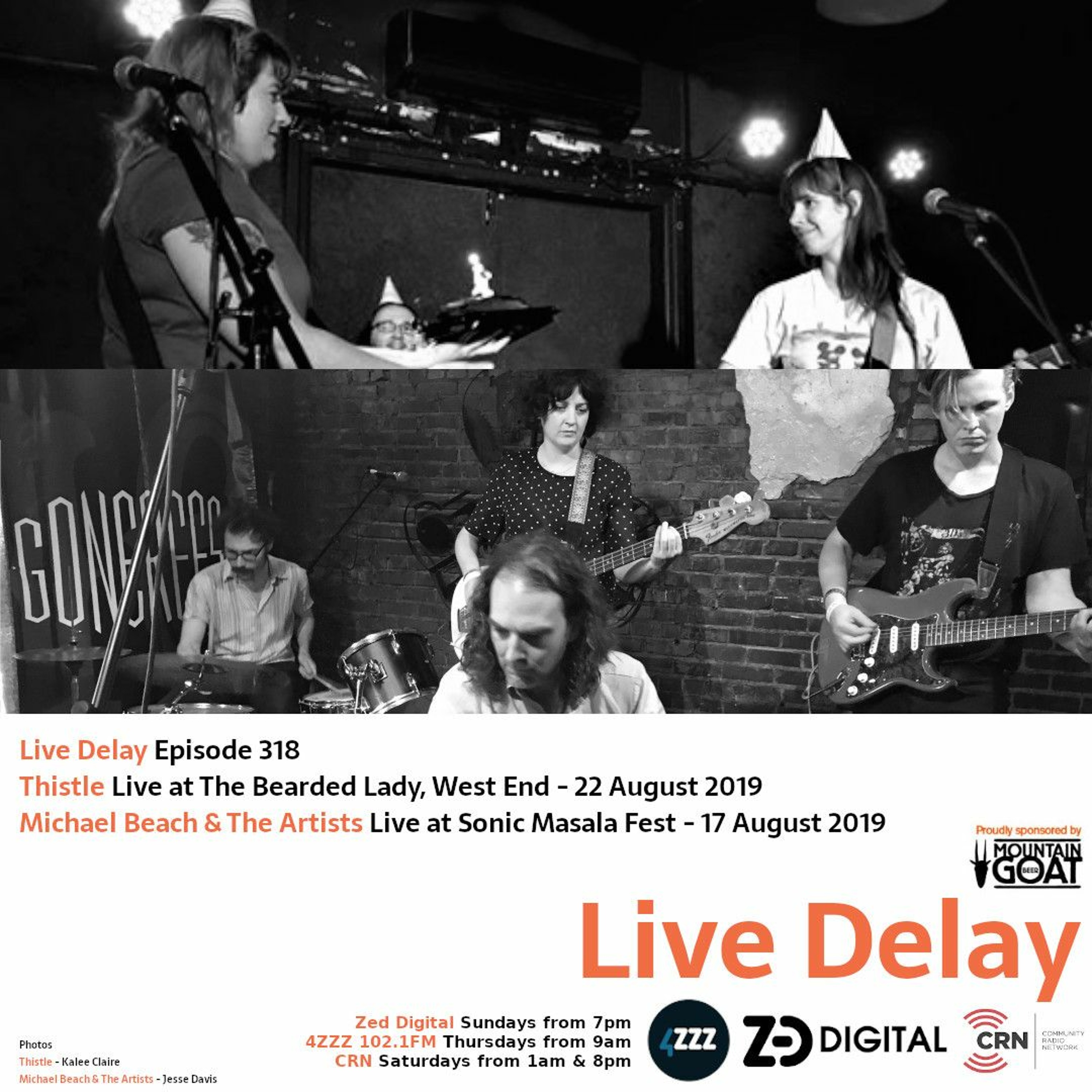 Thistle are a Brisbane trio made up of Kassie Sofia on guitar and vocals, Caroline "Canna" Townsend on bass and Joe Teague on drums. As you'll hear in this set, they celebrated their first anniversary as a band together in August 2019 with some partying live onstage. To paint you a picture, during the set they wore party hats and presented themselves with a supermarket-bought chocolate cake.