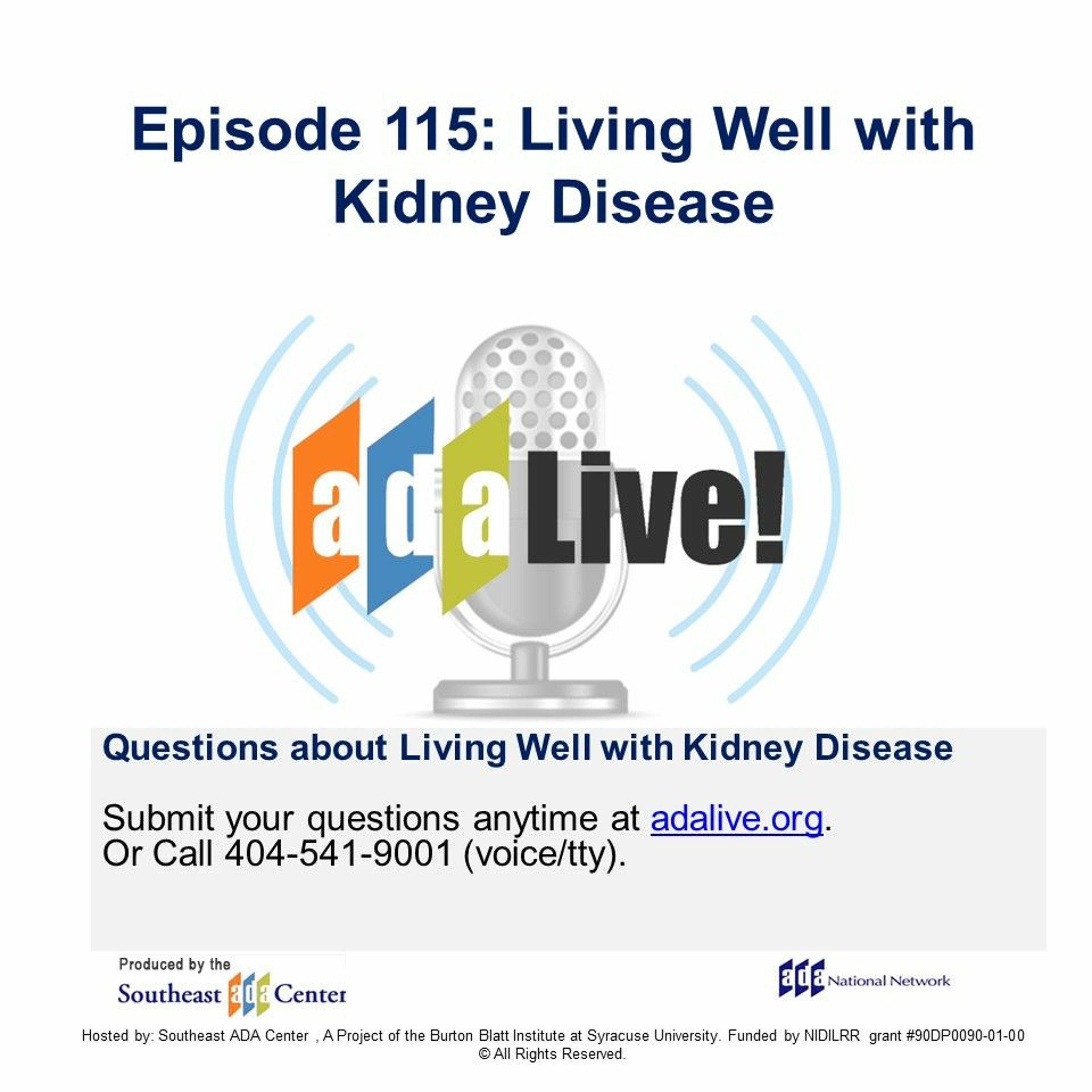 Chronic kidney disease affects nearly 15% of the U.S. population.1 In 2022 a record 24,669 life-saving kidney transplants were performed.2 Kidney disease and other related health conditions like high blood pressure or diabetes can be disabilities that affect your rights under the Americans with Disabilities Act (ADA). Join us for this important episode about living well with kidney disease and the rights of kidney patients and kidney donors under the ADA and other laws.