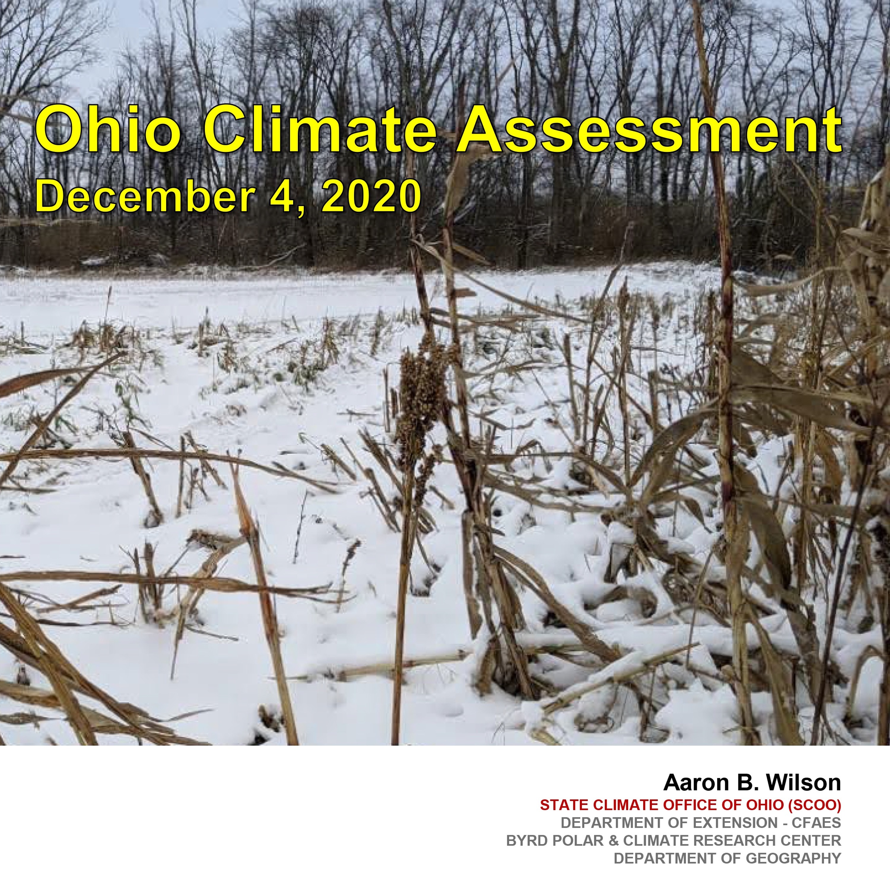 The Ohio Hydrologic and Climate Assessment for December 04, 2020 is presented by Doctor Aaron Wilson, and brought to you by the State Climate Office of Ohio (SCOO), in conjunction with Byrd Polar and Climate Research Center.