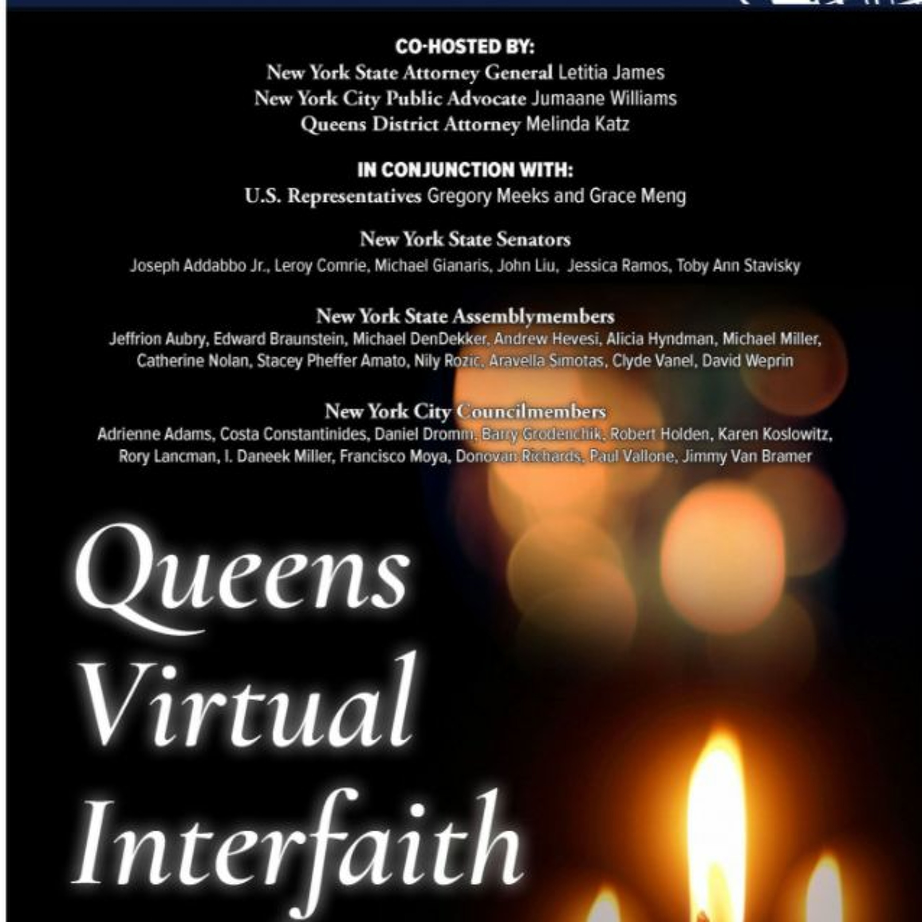 On Sunday, April 26, WBAI 99.5 FM presented a special show: Acting Queens Borough President Sharon Lee, in partnership with faith leaders and elected officials, held a Queens Virtual Interfaith Vigil for the thousands of lives lost in the epicenter of the COVID-19 pandemic, and for the frontline and essential workers upon whom the borough relies. The show - hosted by WBAI host Jeff Simmons - was held in conjunction with U.S. Representatives Gregory Meeks and Grace Meng, emceed by Acting Borough President Lee, and co-hosted by New York State Attorney General Letitia James, New York City Public Advocate Jumaane Williams and Queens District Attorney Melinda Katz, and featured remarks from a number of faith leaders and elected representatives.