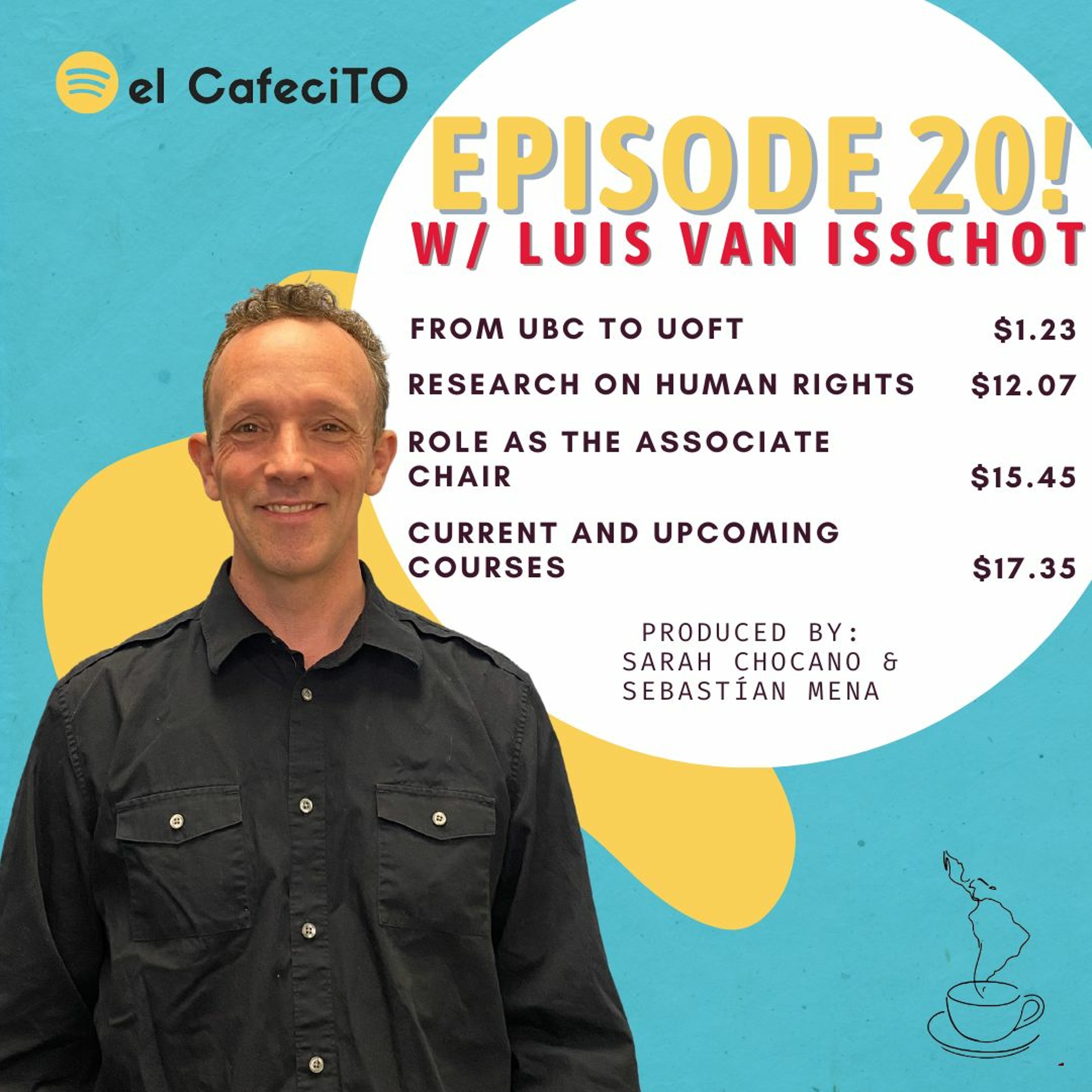 S06E20- In this episode, Sarah and Sebas get to know Professor Luis Van Isschot, our program’s newly appointed Associate Chair. He talks about his trajectory as a historian and human rights observer, his work with Latin American human rights movements in Colombia, and his new role at the Latin American Studies program. Lastly, the chair tells us about the courses he is currently teaching. We hope you enjoy this episode. ☕️🌎.