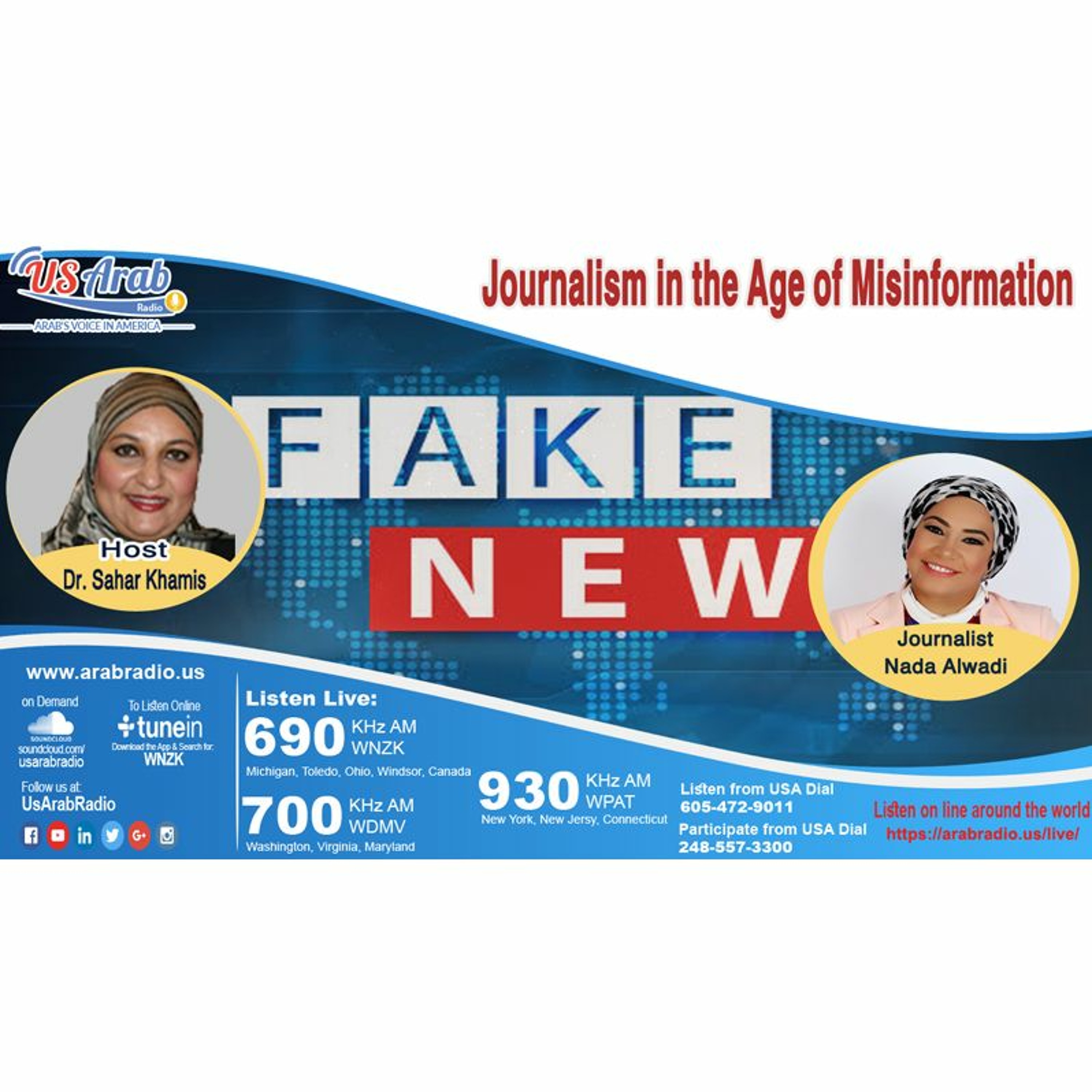 US Arab Radio can be heard on wnzk 690 AM, WDMV 700 AM, and WPAT 930 AM.