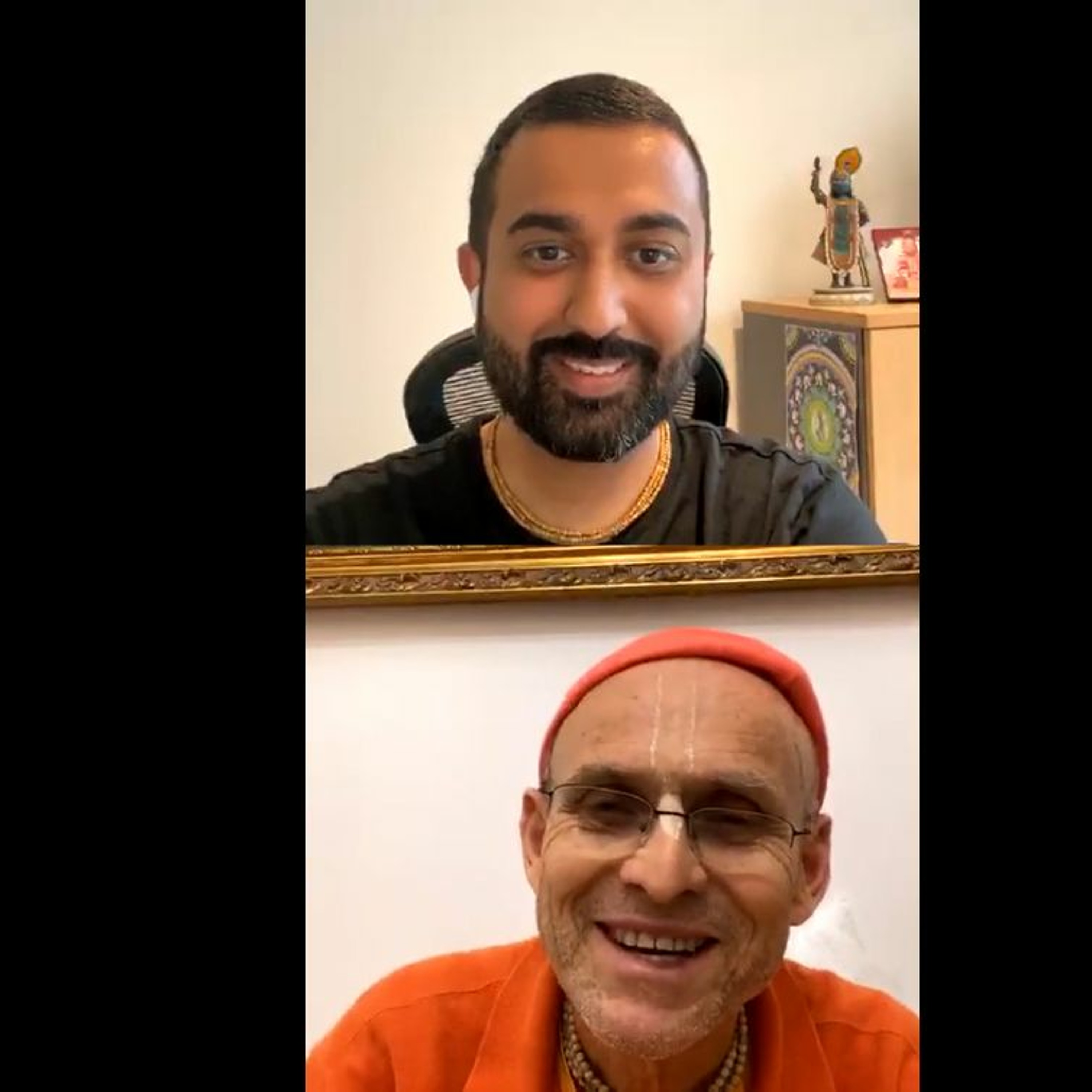 A podcast conversation between Radhika Ranjana and Kadamba Kanana swami on Instagram.