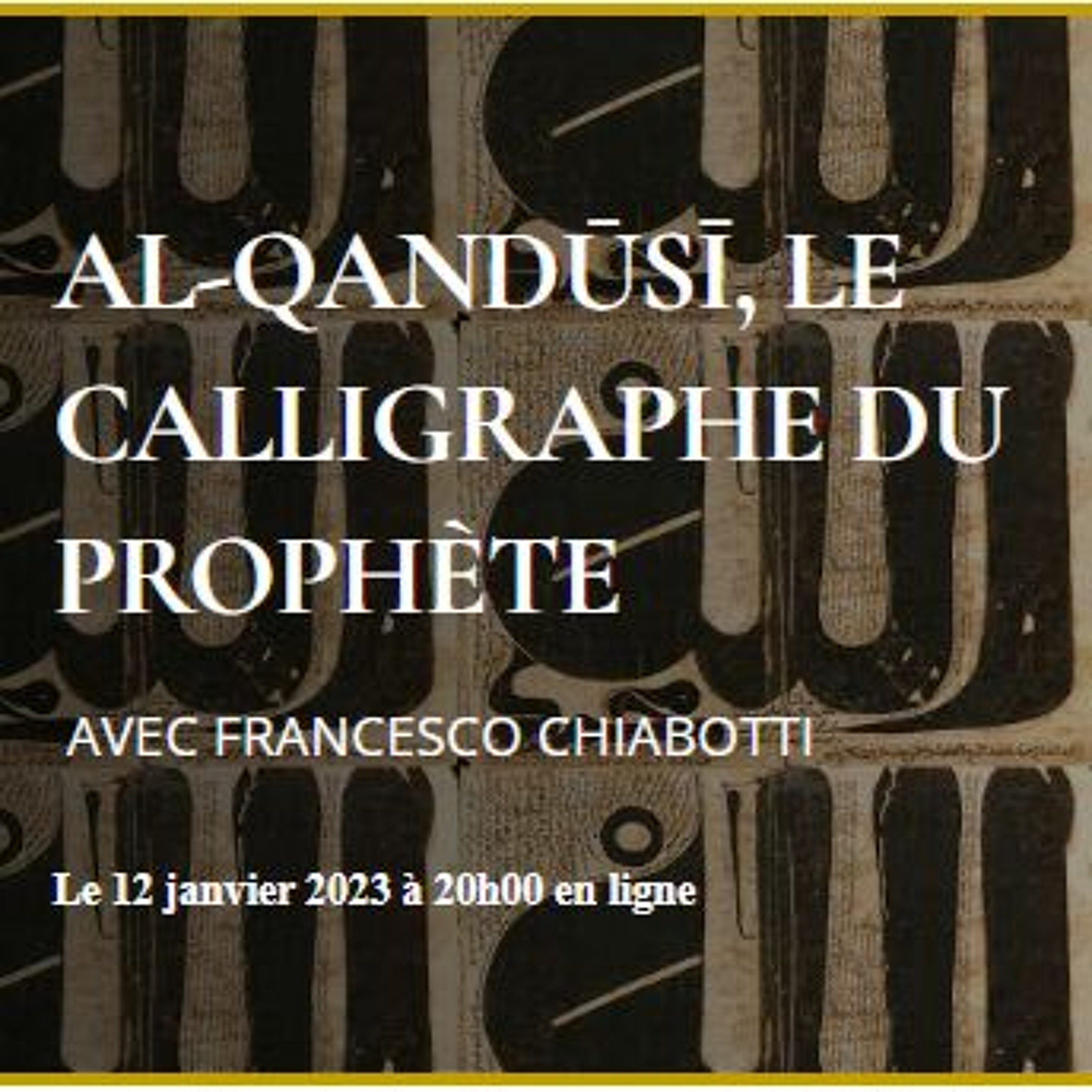 Nous nous retrouvons aujourd'hui jeudi 12 janvier 2023 à 20h00 pour une conférence dédiée à Al-Quandusî le calligraphe du Prophète, avec Francesco Chiabotti, maître de conférence à l’INALCO (Paris).