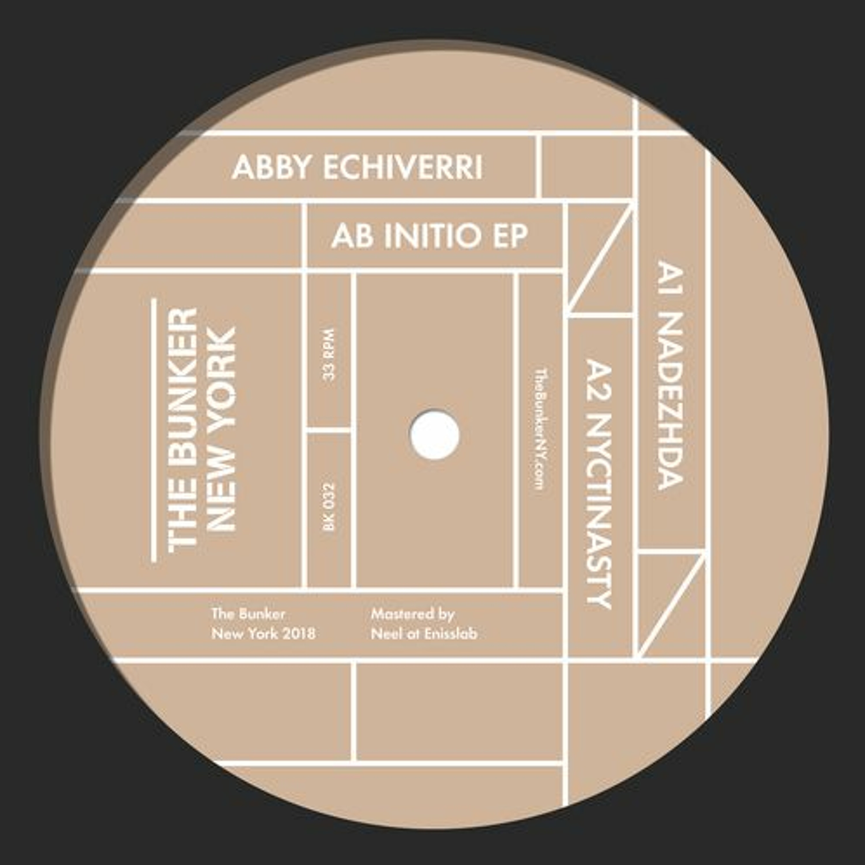 From the very first track, it’s clear that Abby Echiverri’s debut, the “Ab Initio” EP is something different and rare: a polished and fresh interpretation of electronic music that incorporates classic electro squelches with intricate broken beats and expansive synthesizer zone-outs. Although this is her first EP, Abby has extensive history as a musician, sound engineer, DJ and VJ. Her current trajectory started early in childhood when she was classically trained in violin, flute, piano and vocals, cementing music as a part of her daily life. In high school she picked up turntables and began collecting records, eventually moving to NYC to study recording engineering and perform in post-punk bands, and became a regular at Wierd and The Bunker at a very young age. Since then, Echiverri has devoted her professional hours to engineering, maintaining, and manufacturing audio equipment for studios and clubs around the world.