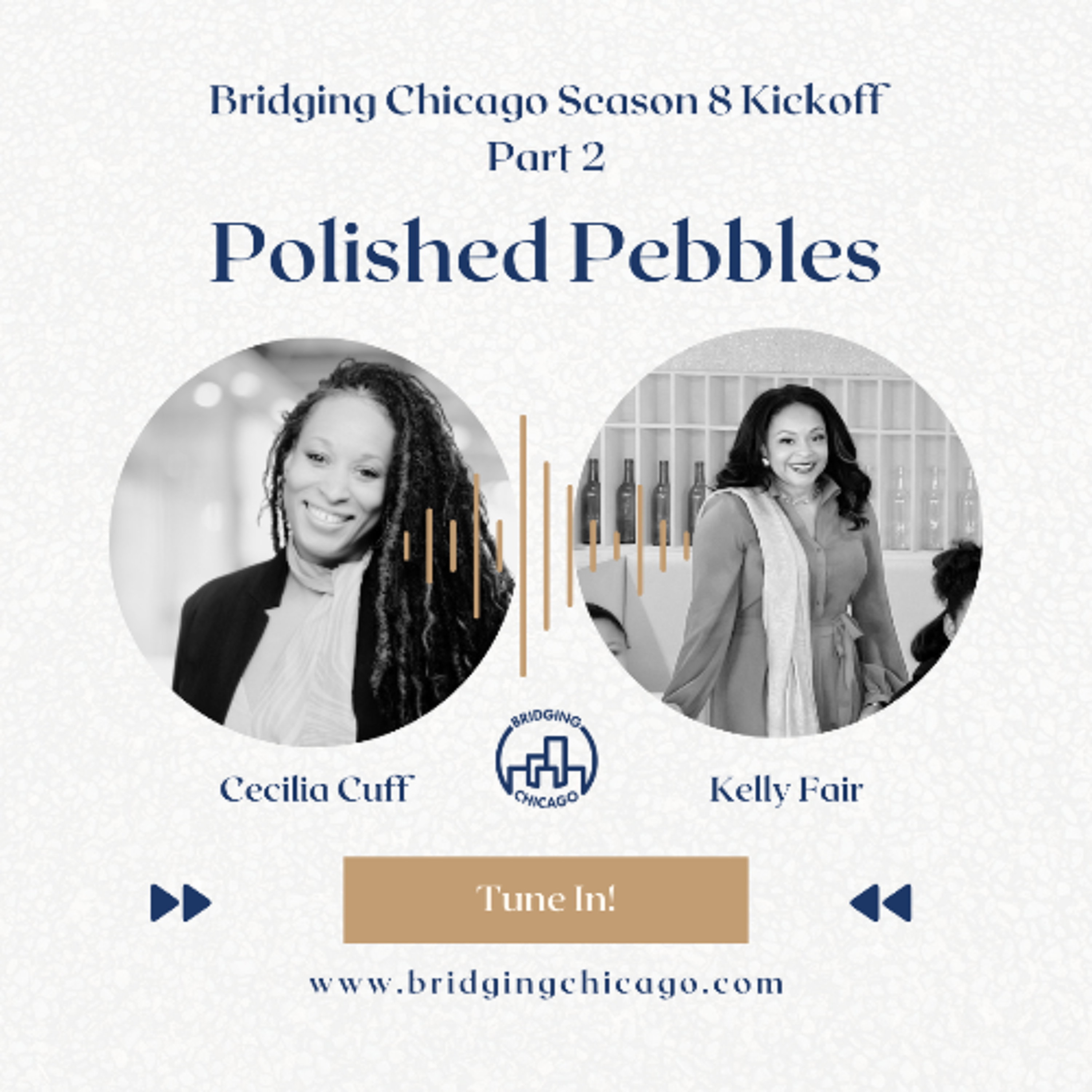 We continue our season 8 premiere of Bridging Chicago with part 2 of our episode with Kelly Fair and Cecilia Cuff. In this part, Kelly and Cecilia talk about why mentorship is so important to them, how it informed their desire to work with Chicago communities, and Polished Pebbles. Both Kelly and Cecilia are laying the groundwork for change in Chicago, especially for girls in the city who will know that there are no limits on what they can accomplish in their lives. The success of Polished Pebbles at this point is only a fraction of what the organization can and will do to help Chicago lead in all areas, and for all people to be a part of the change. Be sure to listen to part 1 if you have not yet, you don't want to miss out.