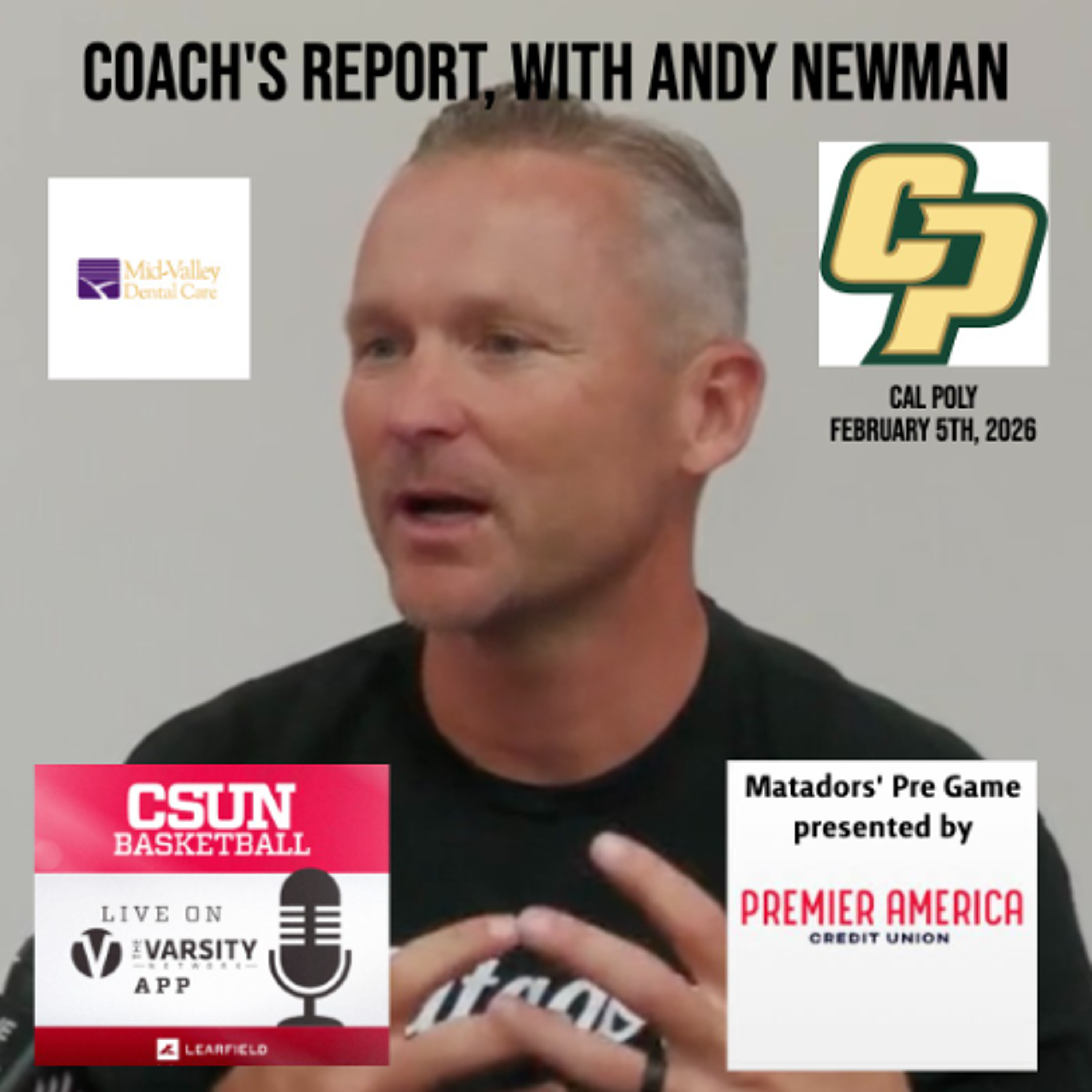 Pre Game chat with CSUN Head Coach Andy Newman, ahead of match-up with Cal Poly, from Mott Athletics Center, San Luis Obispo, CA. Audio Courtesy CSUN Matadors' Sports Properties & Learfield