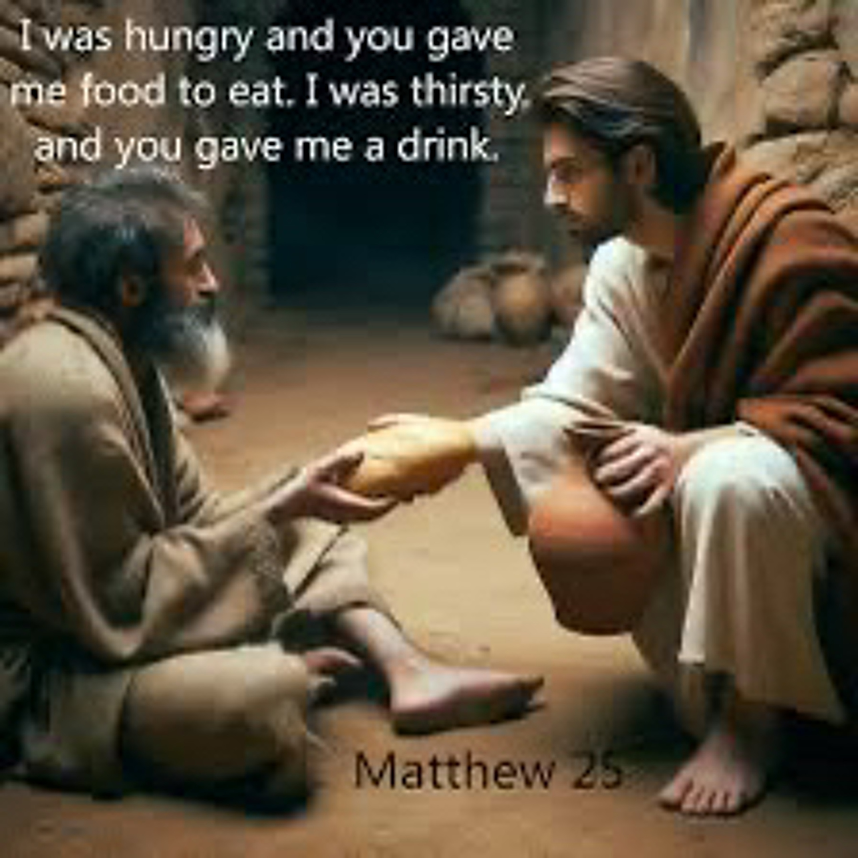 “For I was hungry and you gave me something to eat, I was thirsty and you gave me something to drink, I was a stranger and you invited me in,”
