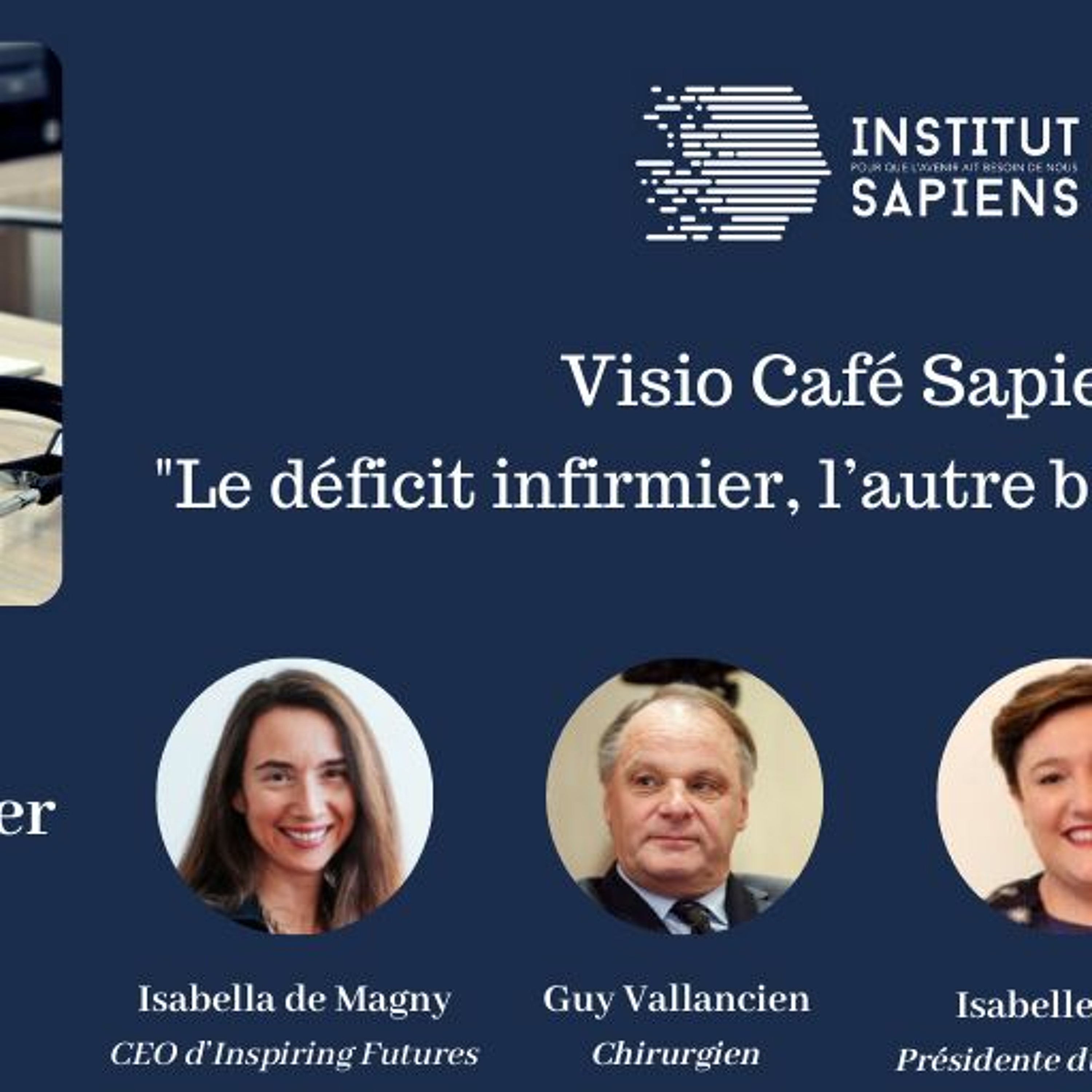 Isabelle Riom (Interne en médecine, ex-présidente du SRP-IMG (Syndicat représentatif parisien des internes de médecine générale), Guy Vallancien (chirurgien, membre de l’académie de Médecine), Vincent Diebolt (directeur de F-CRIN, ancien directeur d’hôpital) et Isabella de Magny (CEO d’Inspiring Futures, fondatrice de GenDH)