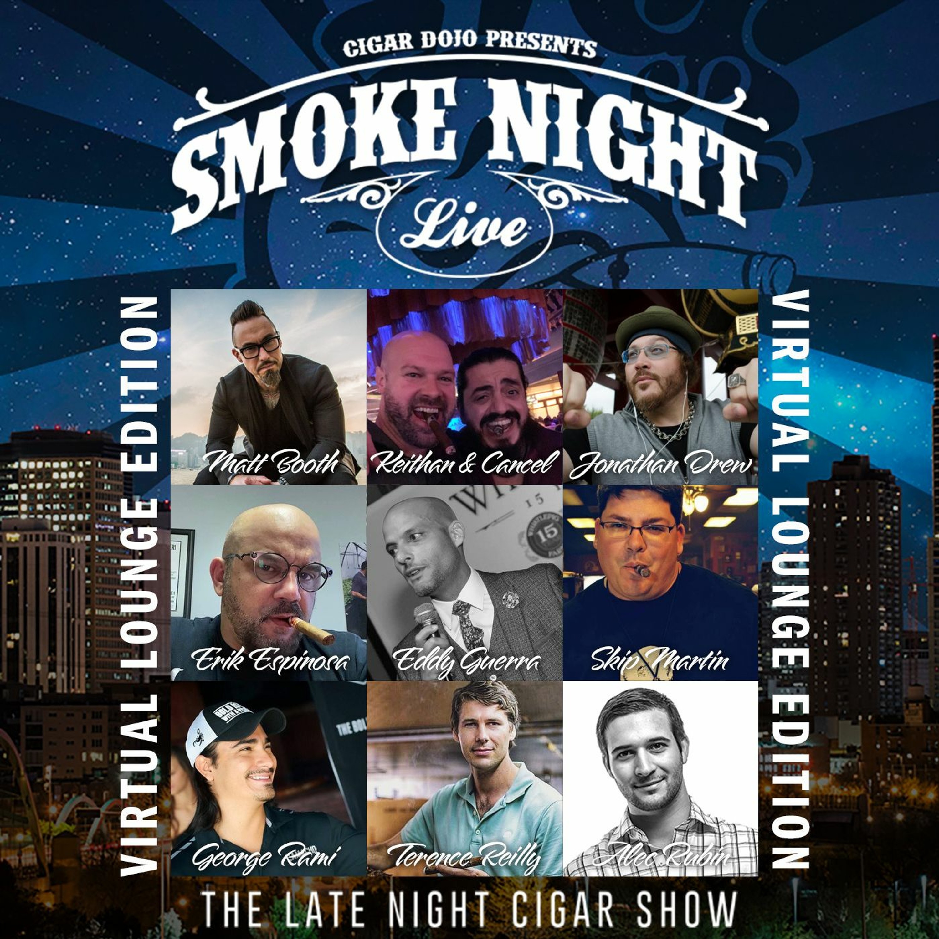 It’s VERY special Smoke Night LIVE, featuring: Jonathan Drew, Erik Espinosa, Matt Booth, Terence Reilly, George Rami, Eddy Guerra, Skip Martin, Alec Rubin, Juan Cancel, and Kevin Keithan. We have assembled almost every cigar brand that has ever collaborated with the Dojo and are throwing them into the Dojo/Protocol Virtual Lounge for a chat about cigars, life, and the existential nature of man’s existence.