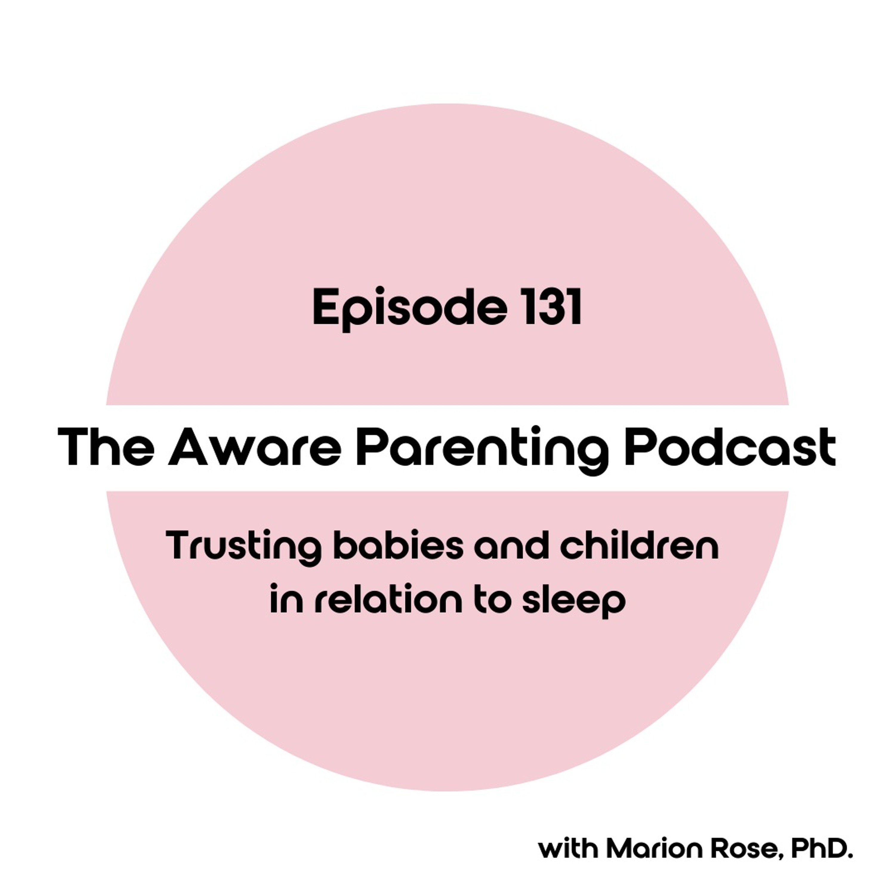 In this episode, I talk about how Aware Parenting's overall approach to trusting babies and children in relation to everything also applies to sleep.