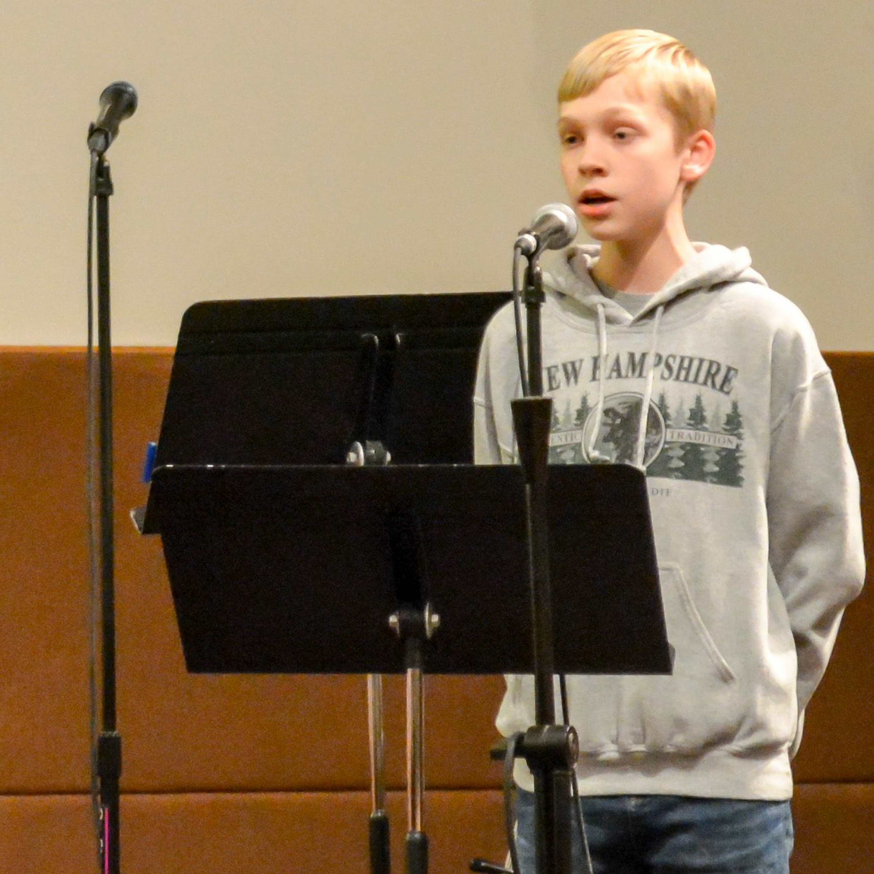 December 7: Vincent VanHatten (13) singing a Capella during Wednesday night worship.