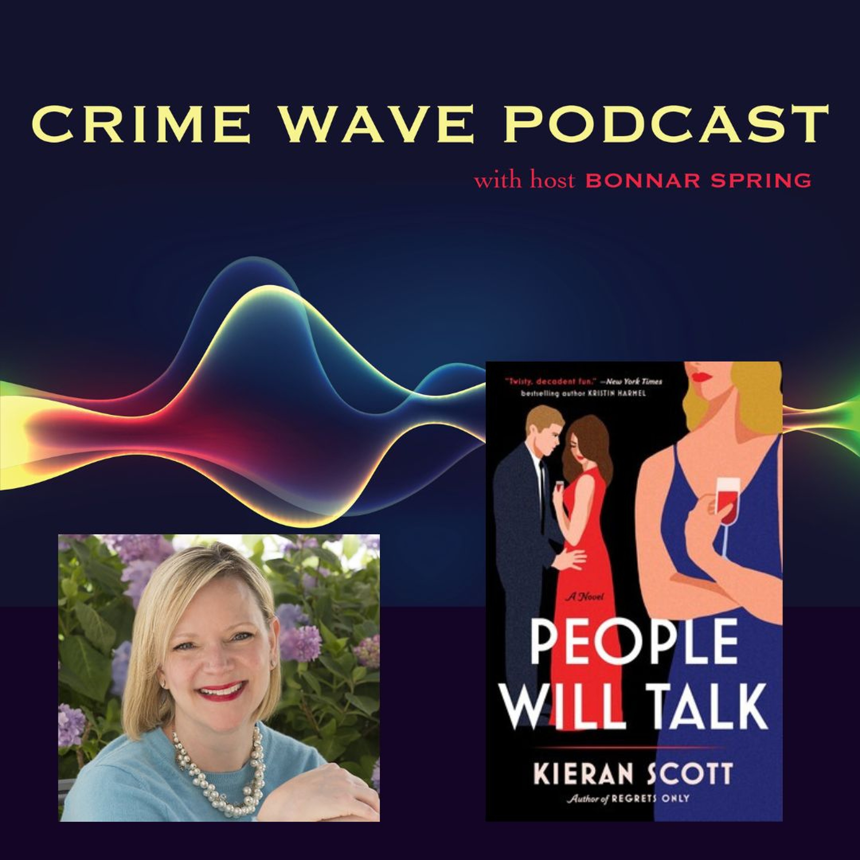 This week on Crime Wave: Oh, yes, you will want to hear Kieran Scott talk about PEOPLE WILL TALK, her just-released adult mystery. It’s got a set-up to die for—a fancy summer clambake turned surprise wedding. Only the groom isn’t marrying his current fiancée or his college girlfriend, whose business he now tells her he won’t finance. Also present—and pissed off—is the legal guardian of the groom’s only child, who is told she will lose custody.