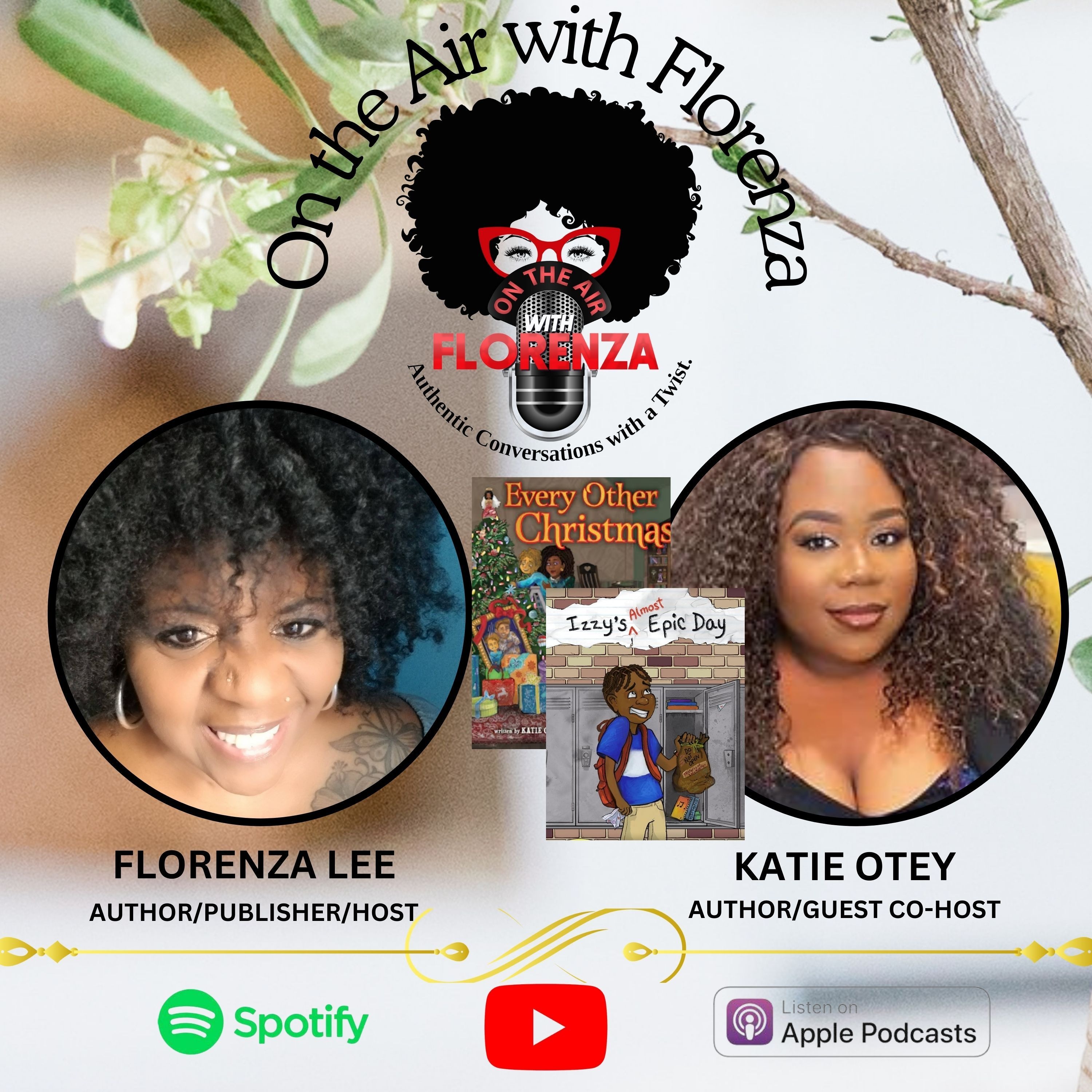 You can engage with Katie via all social media platforms or her website: https://www.katieoteywrites.com/. Florenza may be reached on all social media platforms under Florenza Denise Lee or her website, www.florenza.org.