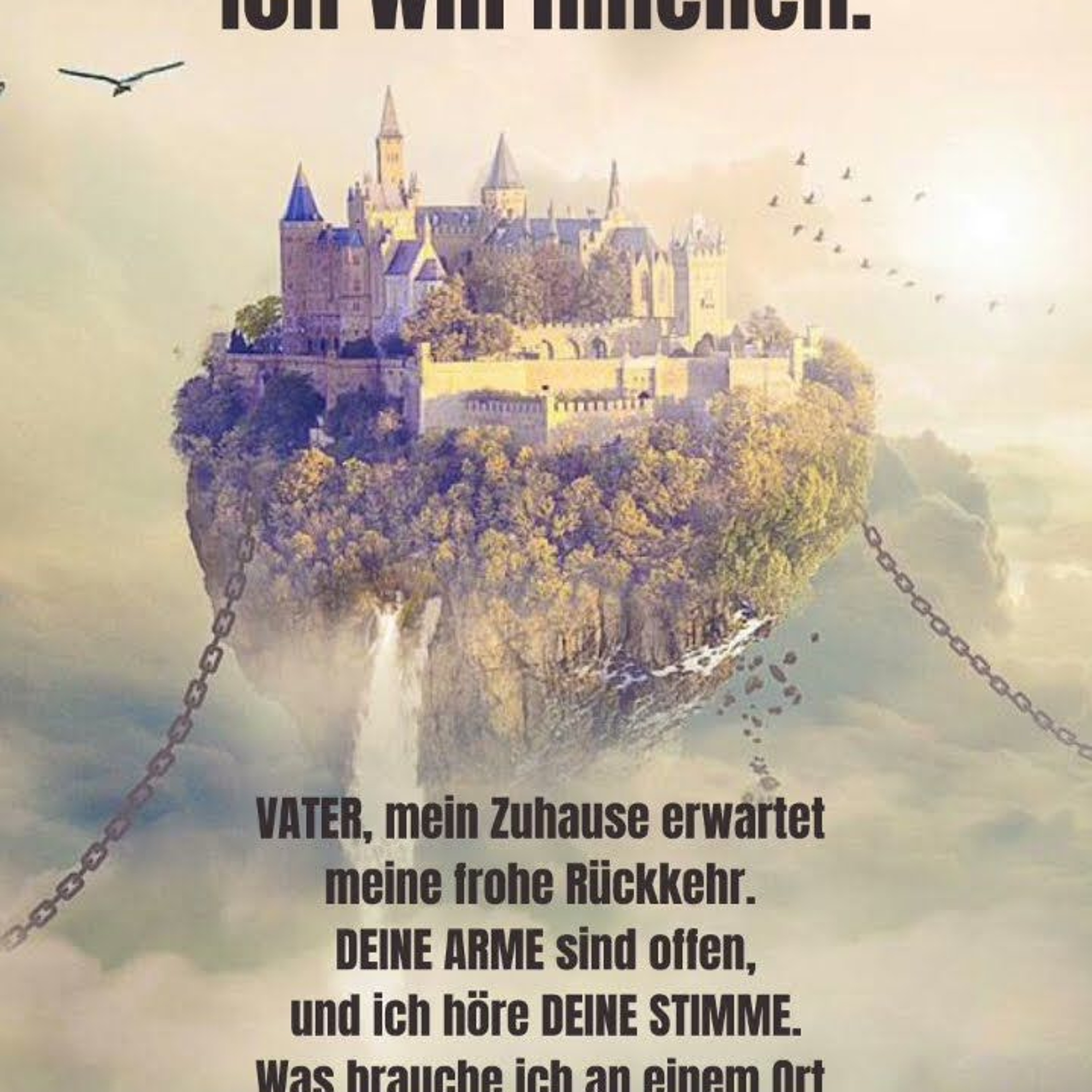 VATER, mein Zuhause erwartet meine frohe Rückkehr. DEINE ARME sind offen, und ich höre DEINE STIMME. Was brauche ich an einem Ort eitler Verlangen und zerschlagener Träume zu verweilen, wenn der HIMMEL so leicht mein sein kann?